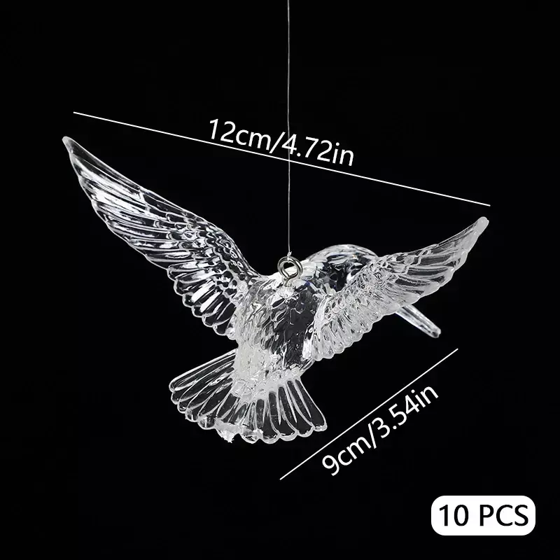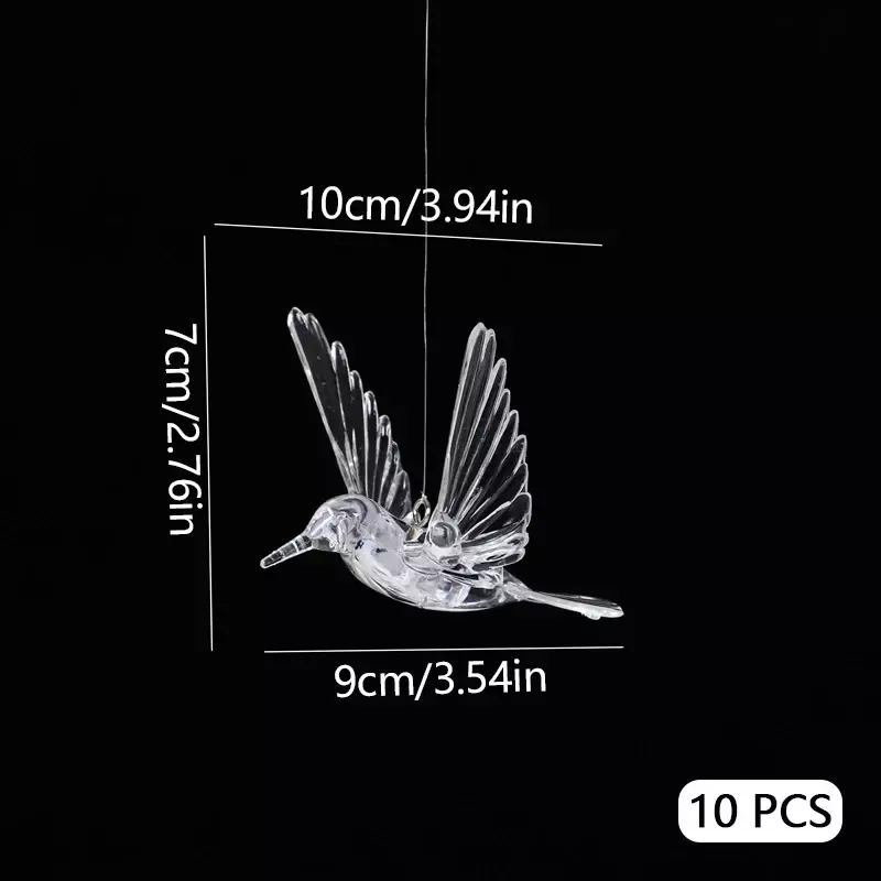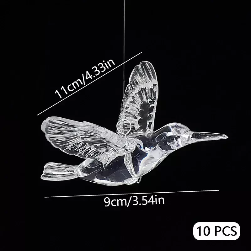 Nome do produto: 10pc cristal transparente plástico pássaro voador acrílico beija-flor adereços suprimentos pendurado ornamentos encantos festa de casamento decoração de natal