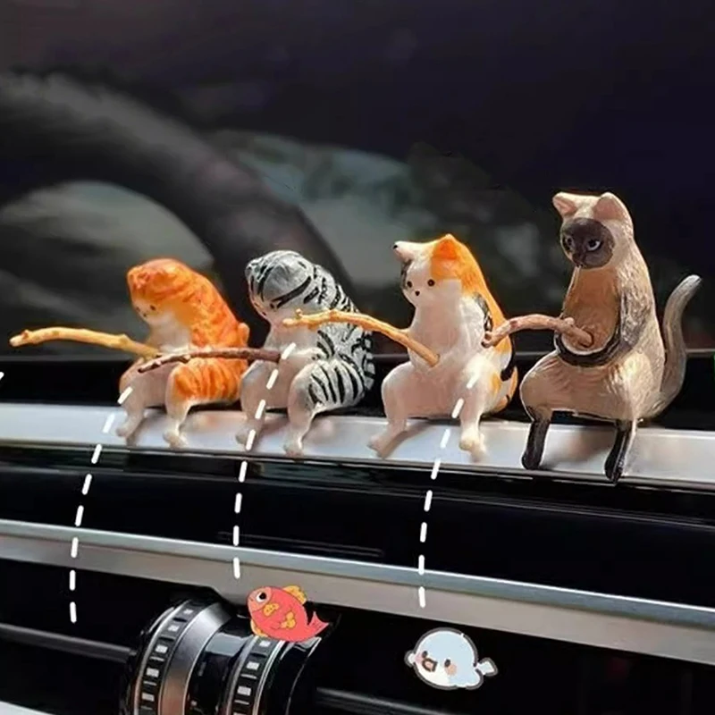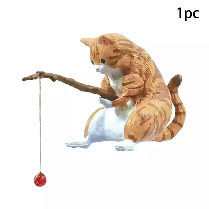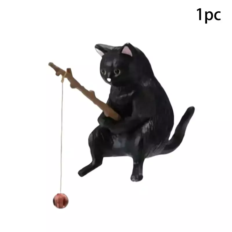 4. Flexible placement: The fishing kitten ornament is small and lightweight, with a moderate volume. It can be placed on the desktop, bookshelves, display cabinets, and other places, and can even be taken out to add more fun to life.