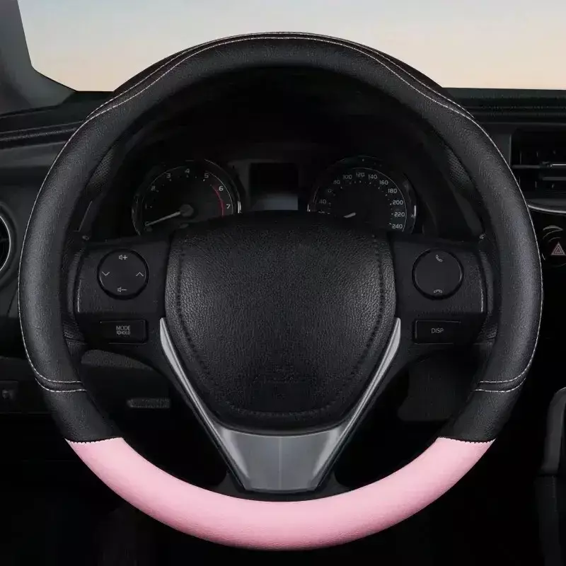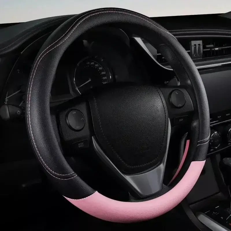 Nome do produto: capa de volante de couro emendada colorida, resistente ao desgaste, antiderrapante, absorvente de suor