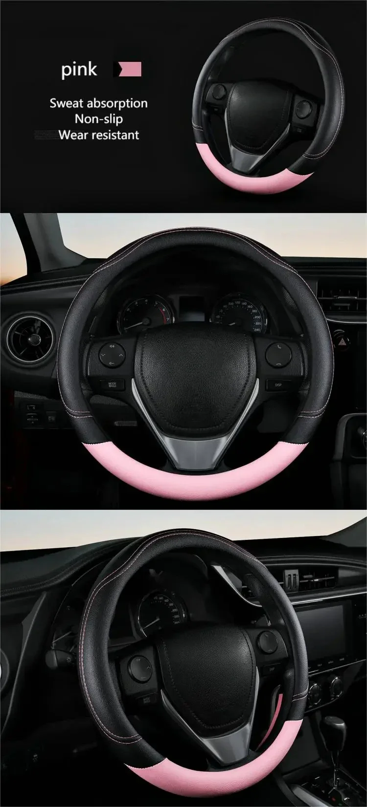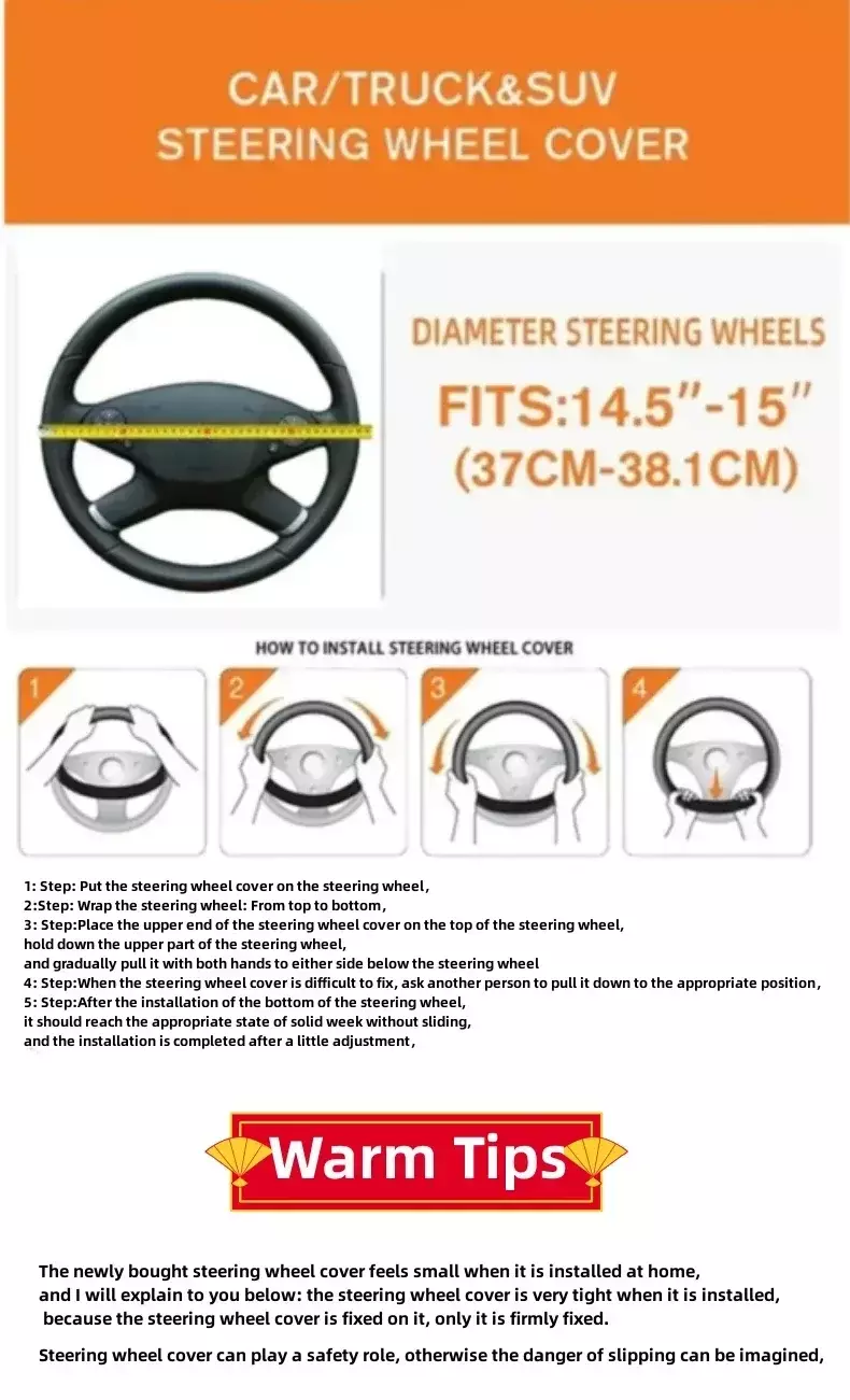 • Ajuste universal:Projetada para caber universalmente na maioria dos volantes, esta capa é uma adição versátil a qualquer veículo.Oferece uma combinação perfeita de estilo e funcionalidade.