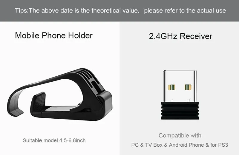 Este controlador de jogo não tem função Bluetooth, nem vibração, usando tecnologia madura de transmissão sem fio 2.4G!Conexão automática superior.Com o uso de chips de alto desempenho, o gamepad do jogo tem melhor estabilidade, 360 de alta precisão° Rockers, o atraso é quase zero, suporta todos os tipos de dispositivos Android.Suporte PC, tablet, caixa de TV, smart TV, para PS3, etc.Com o design da curva do corpo humano, você não se sentirá cansado mesmo se for viciado ao jogo por muito tempo!