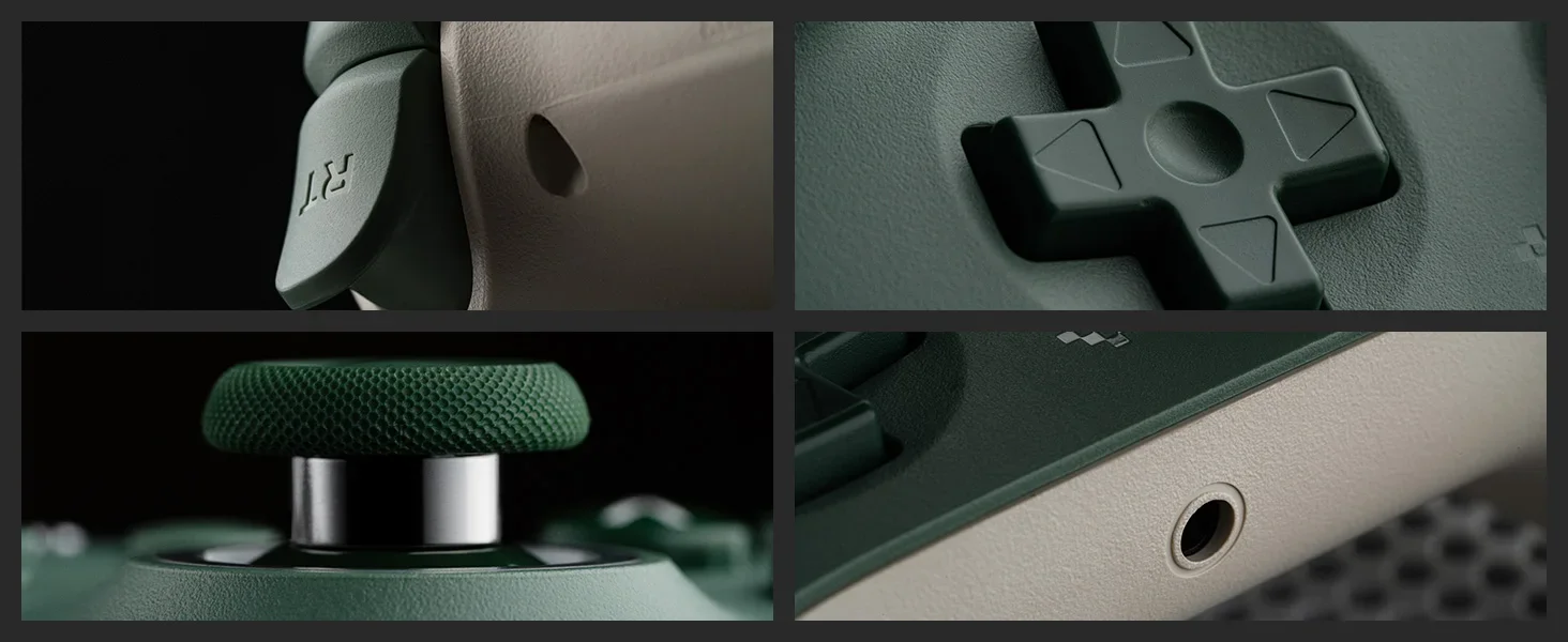 3.5mm áudio jack. Joysticks resistentes ao desgaste. Para-choques e D-pad atualizados.