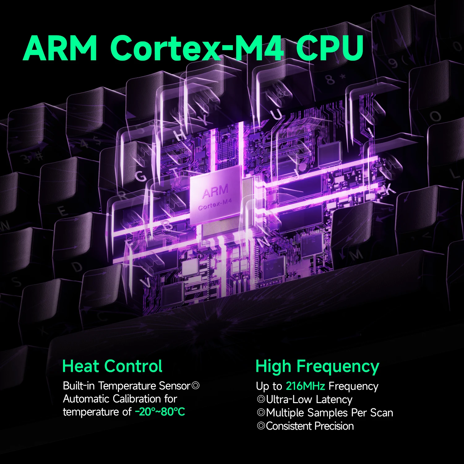 CPU ARM Cortex-M4 A poderosa CPU oferece potência de processamento aprimorada com baixo consumo de energia.Possui calibração automática entre -20°C e 80°C, garantindo desempenho mais rápido e vida útil prolongada da bateria (somente para modelos sem fio). |
