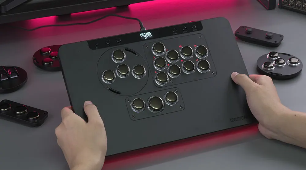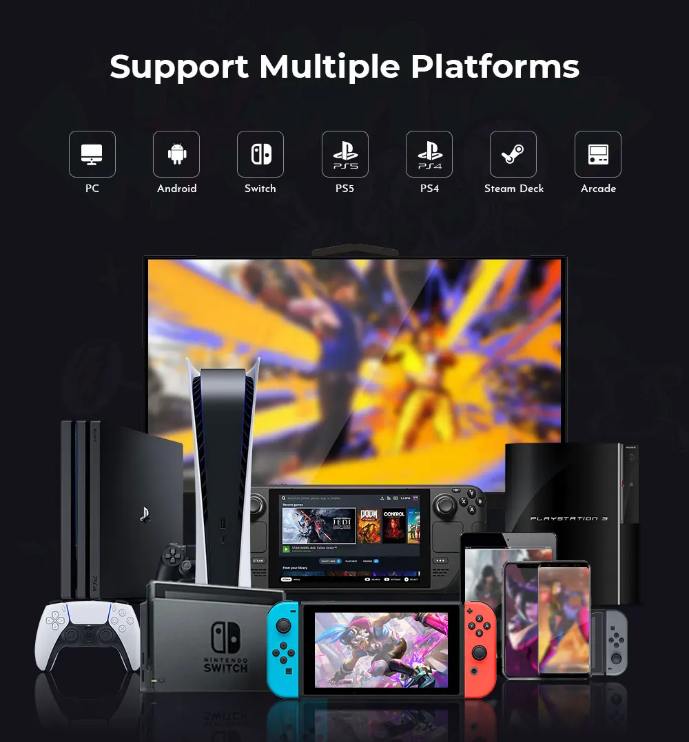 Este é um controlador sem alavanca feito de interruptores de cristal, que é completamente branco e impecável, tornando-o irresistível.O efeito de iluminação RGB tem melhor transparência, permitindo que você mergulhe no jogo.
