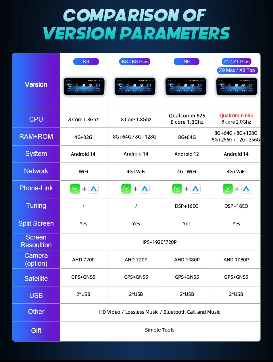 RAM/ROM: 4 GB, 8 GB/32 GB, 64 GB, 128 GB, 256 GB