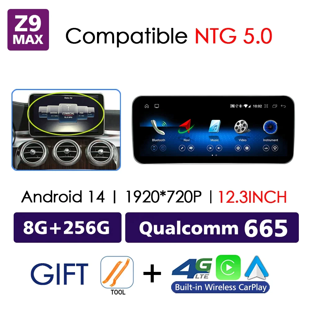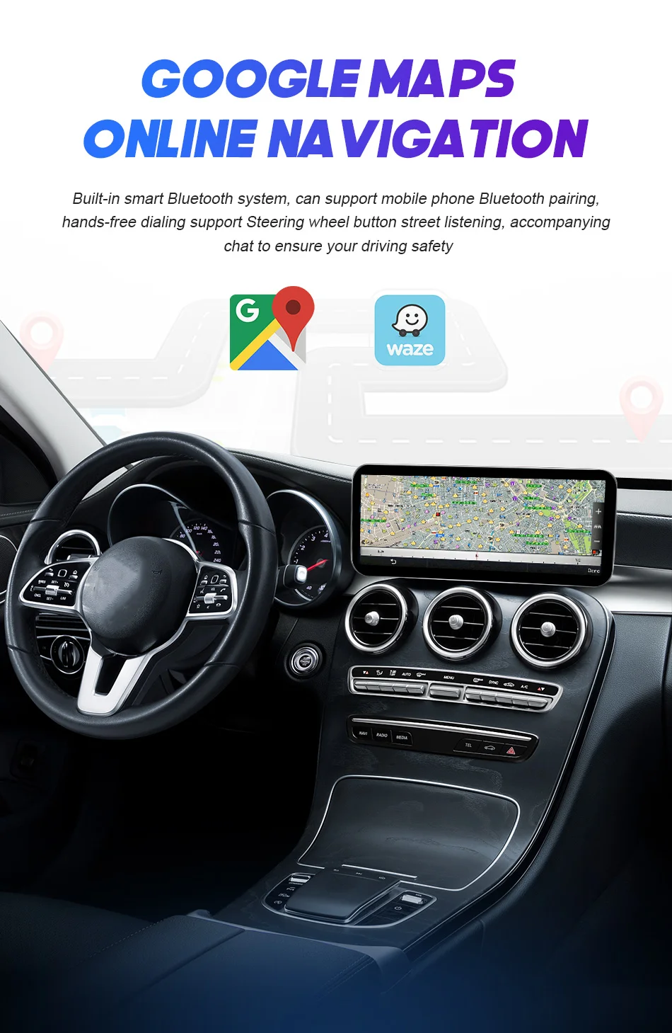 Carplay automático sem fio android 14 para mercedes benz classe c w205 2014-2018 navegação multimídia do carro gps swc dsp 4g wifi