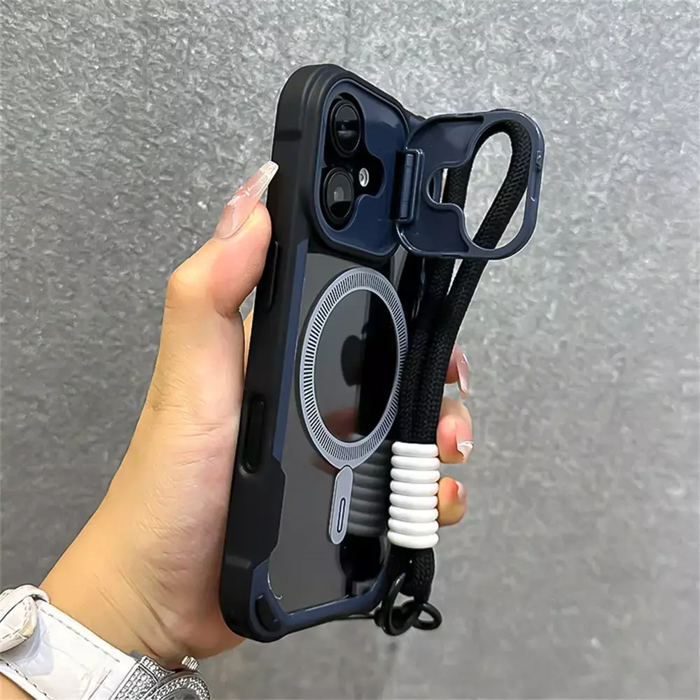 Armadura doce cor choque para magsafe caso de telefone para iphone 11 15 14 13 12 16 pro max plus suporte com alça de pulso capa traseira do telefone