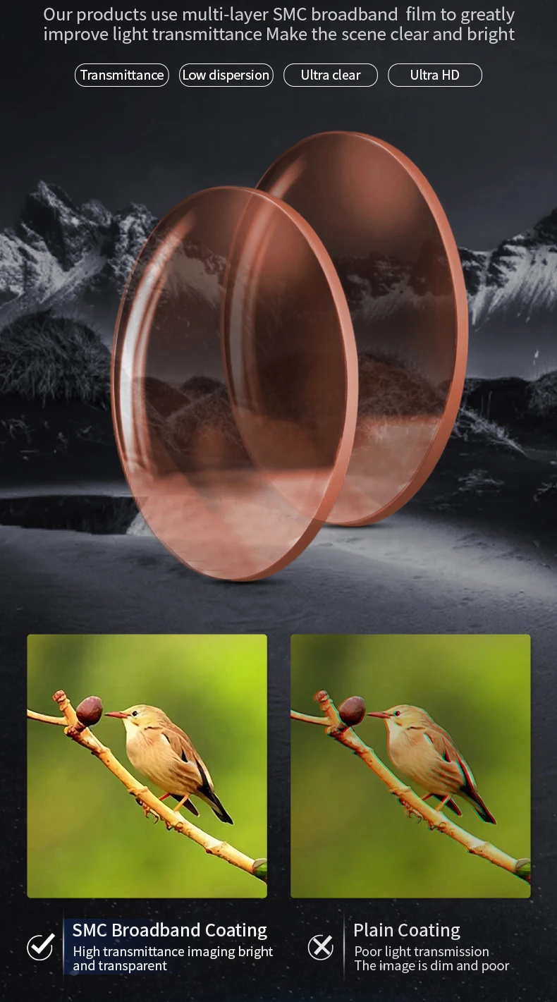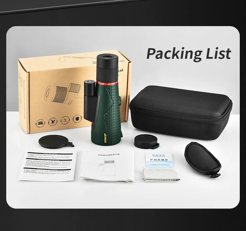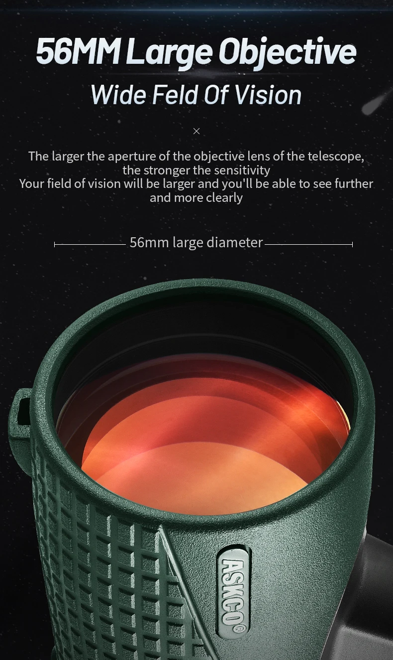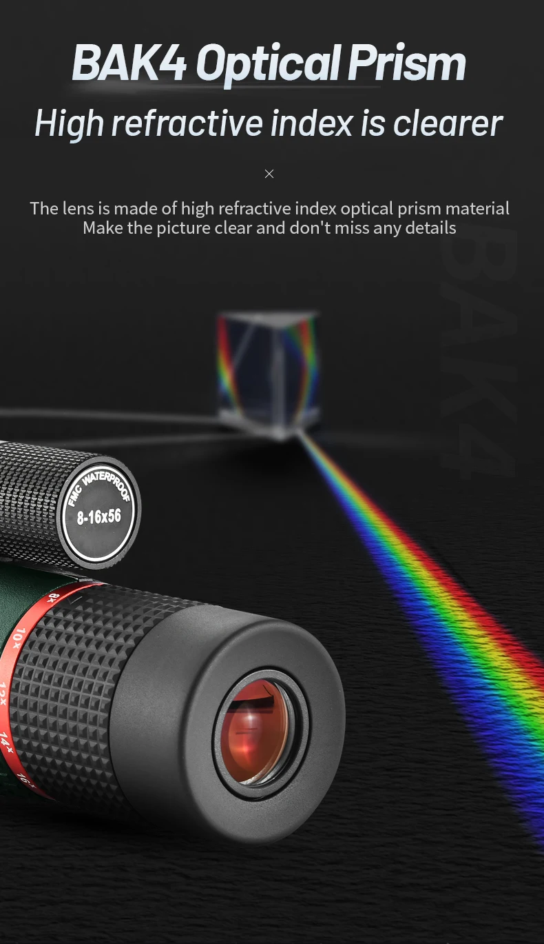 Teescópio monocular de vidro ASKCO 8-16X56 ED com revestimento SMC de longo alcance Binóculos portáteis anti-vibração BAK4 com zoom de longo alcance para caça