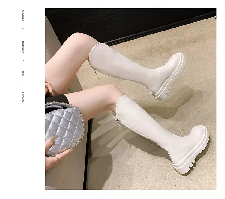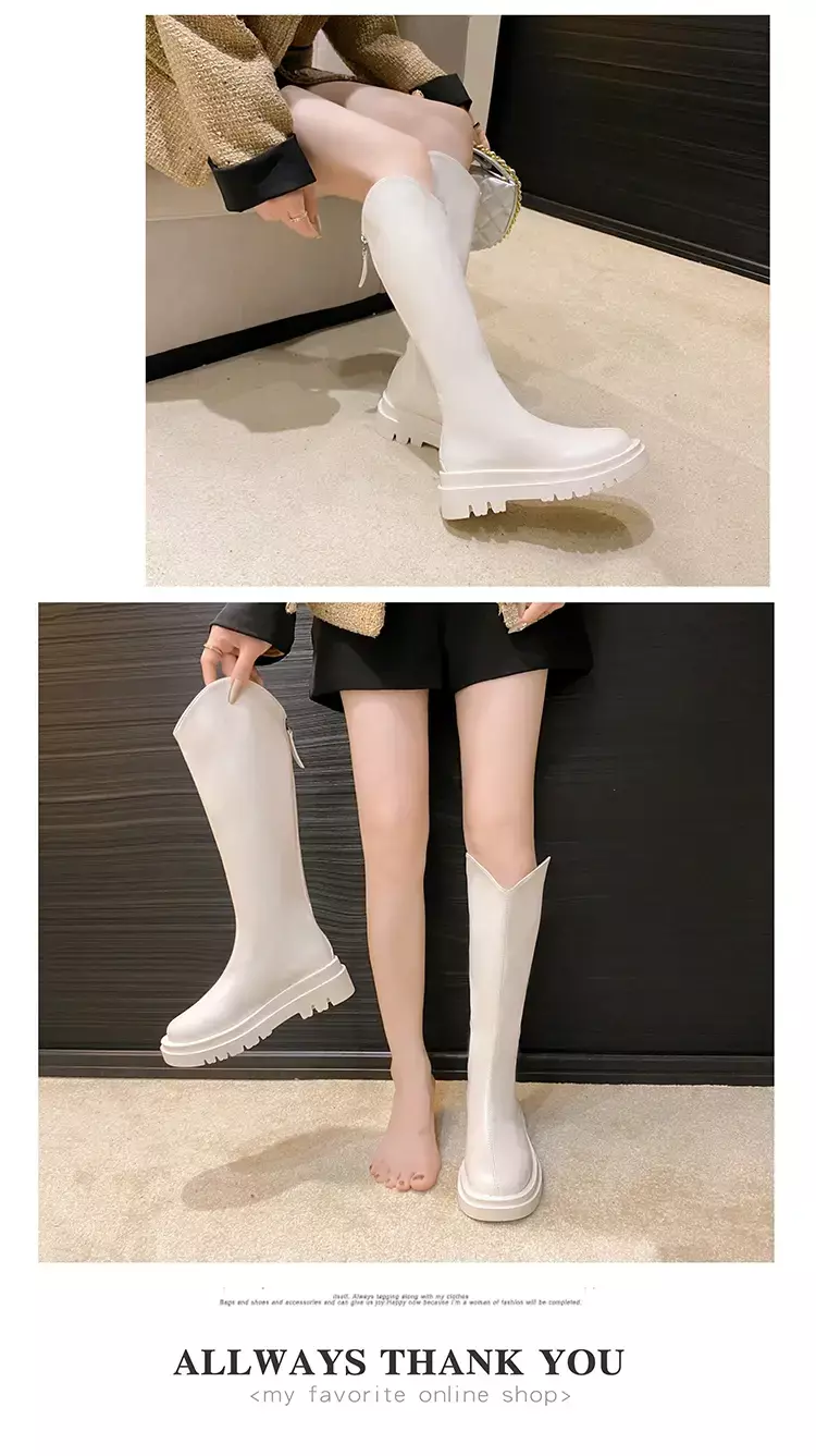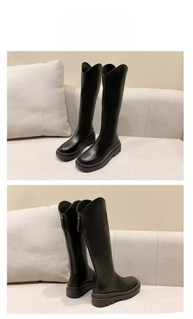 As botas possuem uma plataforma elevada, ajudando a aumentar a altura e a melhorar a postura.
