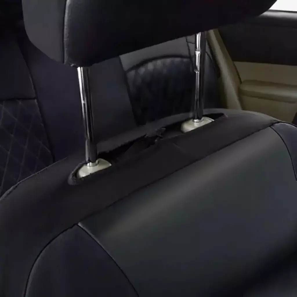 Tamanho das capas do encosto de cabeça: 30*27cm,a parte frontal é de couro, a parte traseira é de poliéster