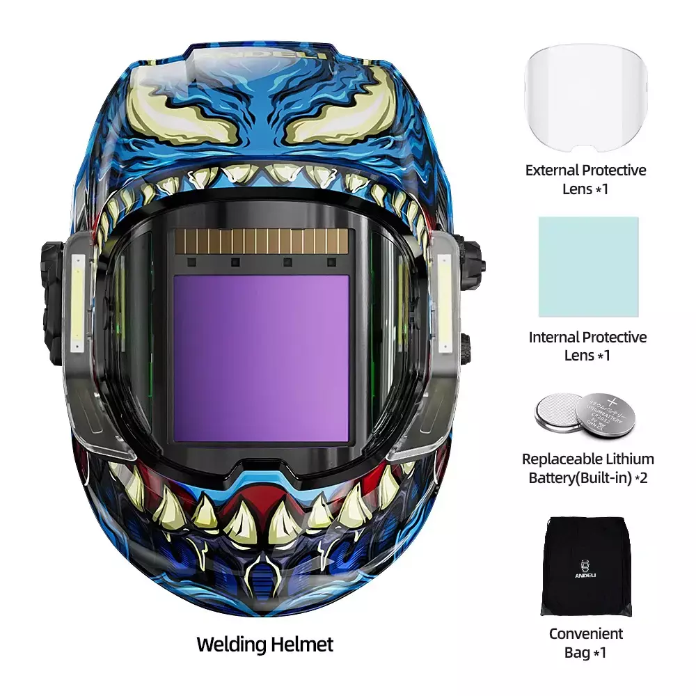 5. o pacote inclui: cada compra inclui 1 capacete de soldagem, 1 bolsa de pano portátil, 1 lente externa e 1 lente interna, garantindo que você tenha tudo o que precisa para suas tarefas de soldagem.