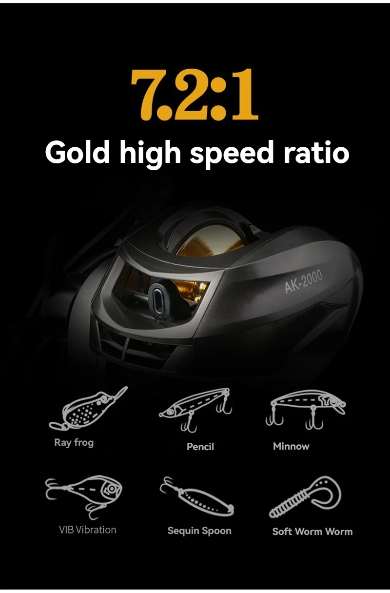 Carretel de arremesso, rolamento de metal, roda de gotas de água de alumínio, linha anti-explosão 7,2:1, alta taxa de velocidade de rotação, equipamento de pesca
