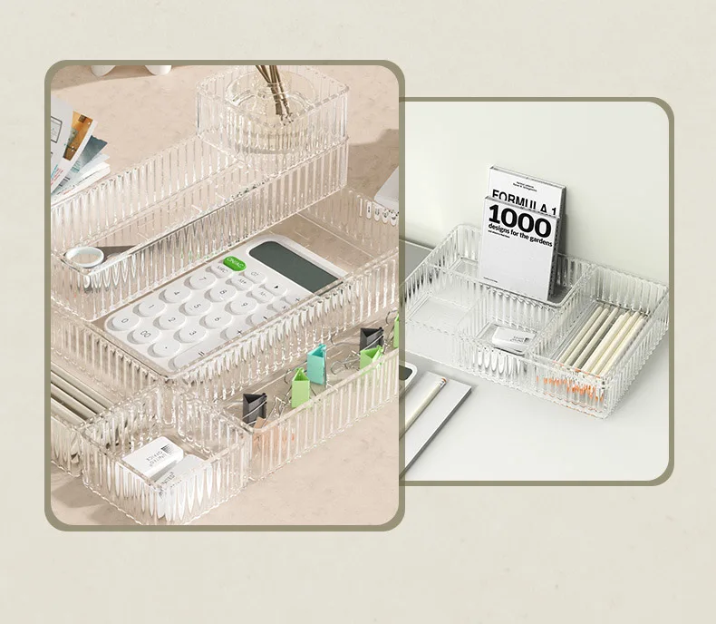 Conjunto de organizadores de gaveta de mesa ilimitados, organizador de maquiagem de plástico para armazenamento de banheiro, caixa de armazenamento transparente transparente, caixas, gadget de cozinha