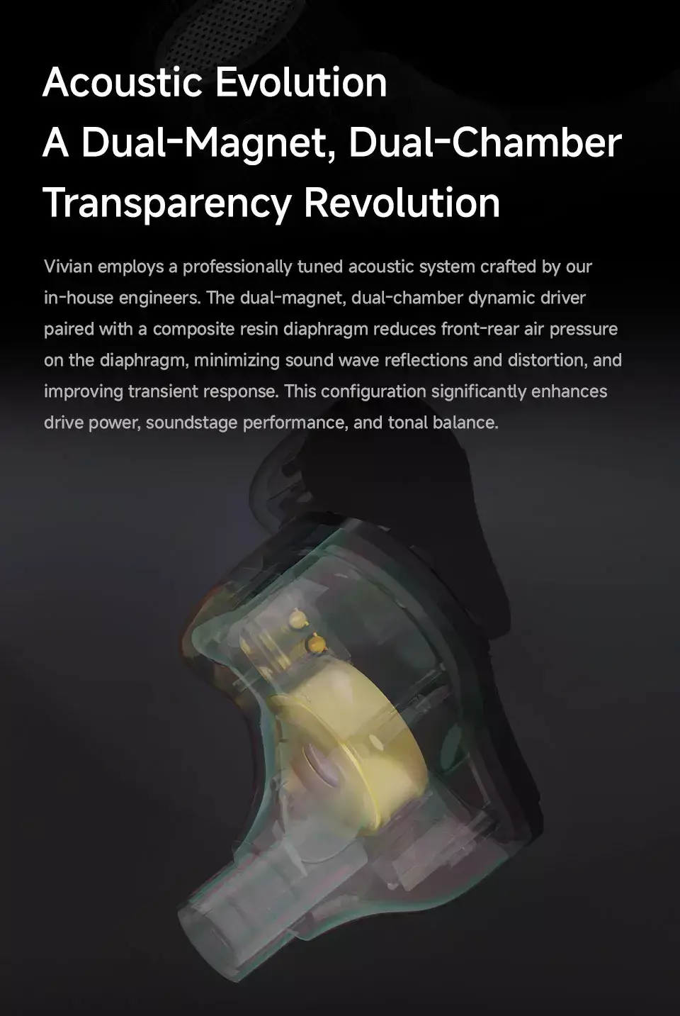 Os fones de ouvido CVJ Vivian são projetados para oferecer uma excelente experiência de áudio.Equipados com um driver dinâmico magnético duplo de 10 mm, eles oferecem um som rico e poderoso.A unidade de alto-falante fornece uma resposta transitória significativa, garantindo uma reprodução de áudio rápida e precisa.O design magnético duplo melhora o desempenho de baixa frequência, proporcionando graves profundos e puntivos, ao mesmo tempo que cria um amplo palco sonoro com densidade atmosférica aprimorada.Esteja você ouvindo música, assistindo filmes ou jogando, a qualidade do som de alta fidelidade irá mergulhá-lo no conteúdo de áudio.A resposta de frequência varia de 20 a 20.000 Hz, cobrindo todo o espectro audível, permitindo que você ouça cada detalhe do seu áudio, desde as notas graves mais baixas até os agudos mais altos.