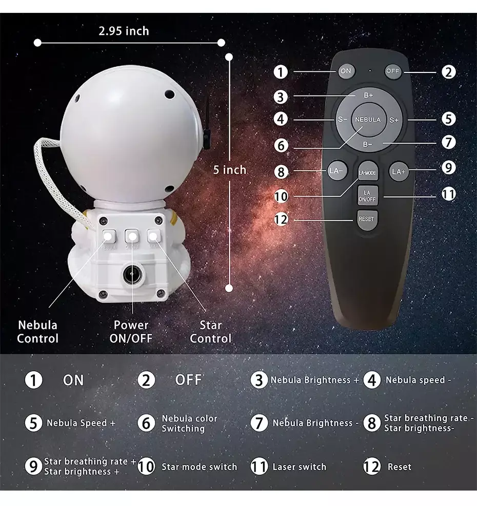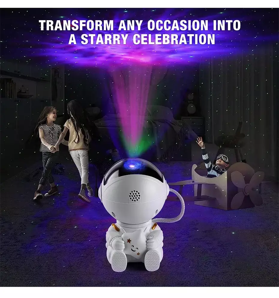 • Ondulação de Água da Nebulosa Laser Spaceman: O design exclusivo de ondulação de água adiciona um toque de elegância e modernidade ao seu quarto ou sala de estar.