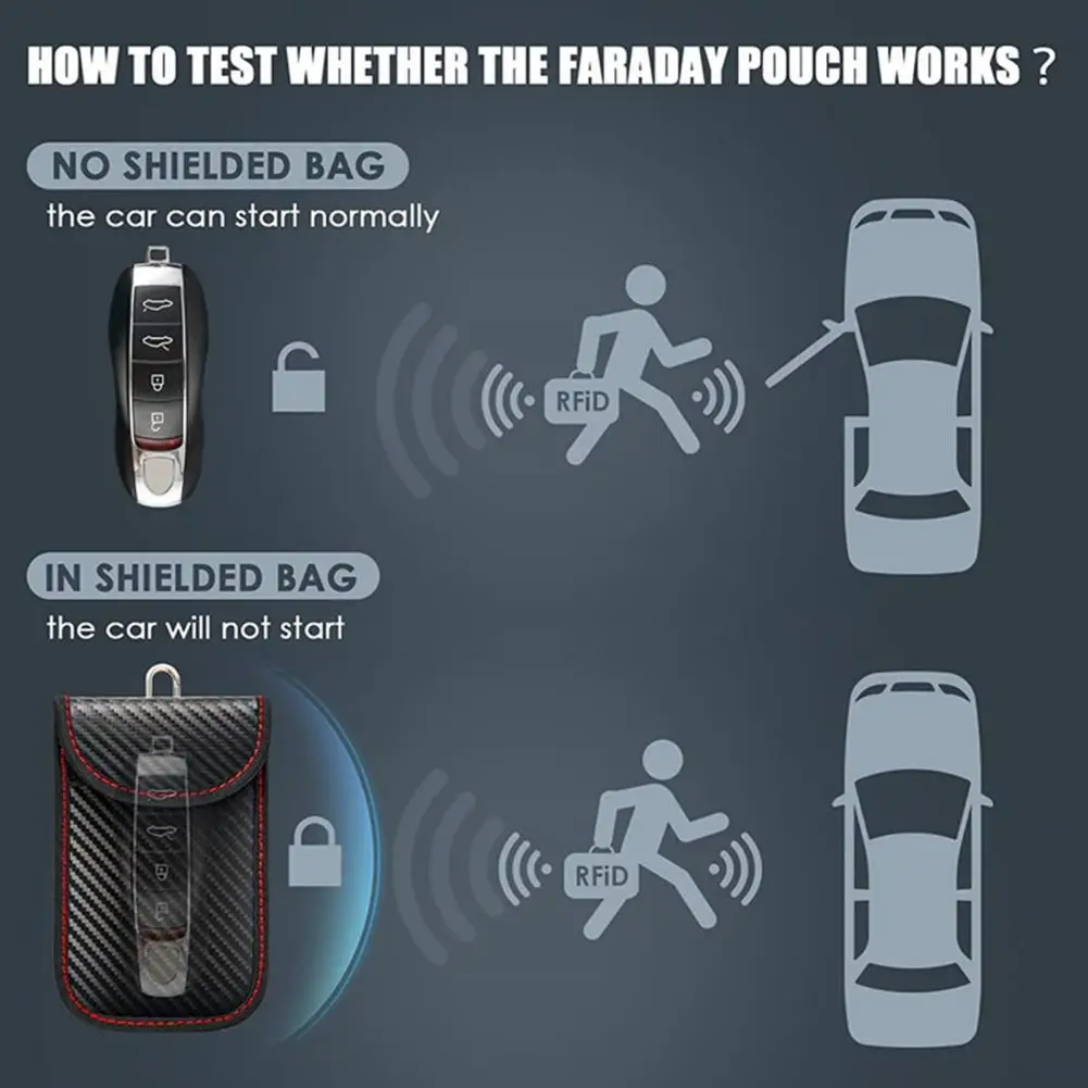 Proteja seu veículo com facilidade colocando sua chave remota dentro desta bolsa Faraday.A tecnologia avançada bloqueia sinais de vários transmissores, oferecendo proteção abrangente contra roubo de automóveis e acesso não autorizado em uma única etapa.