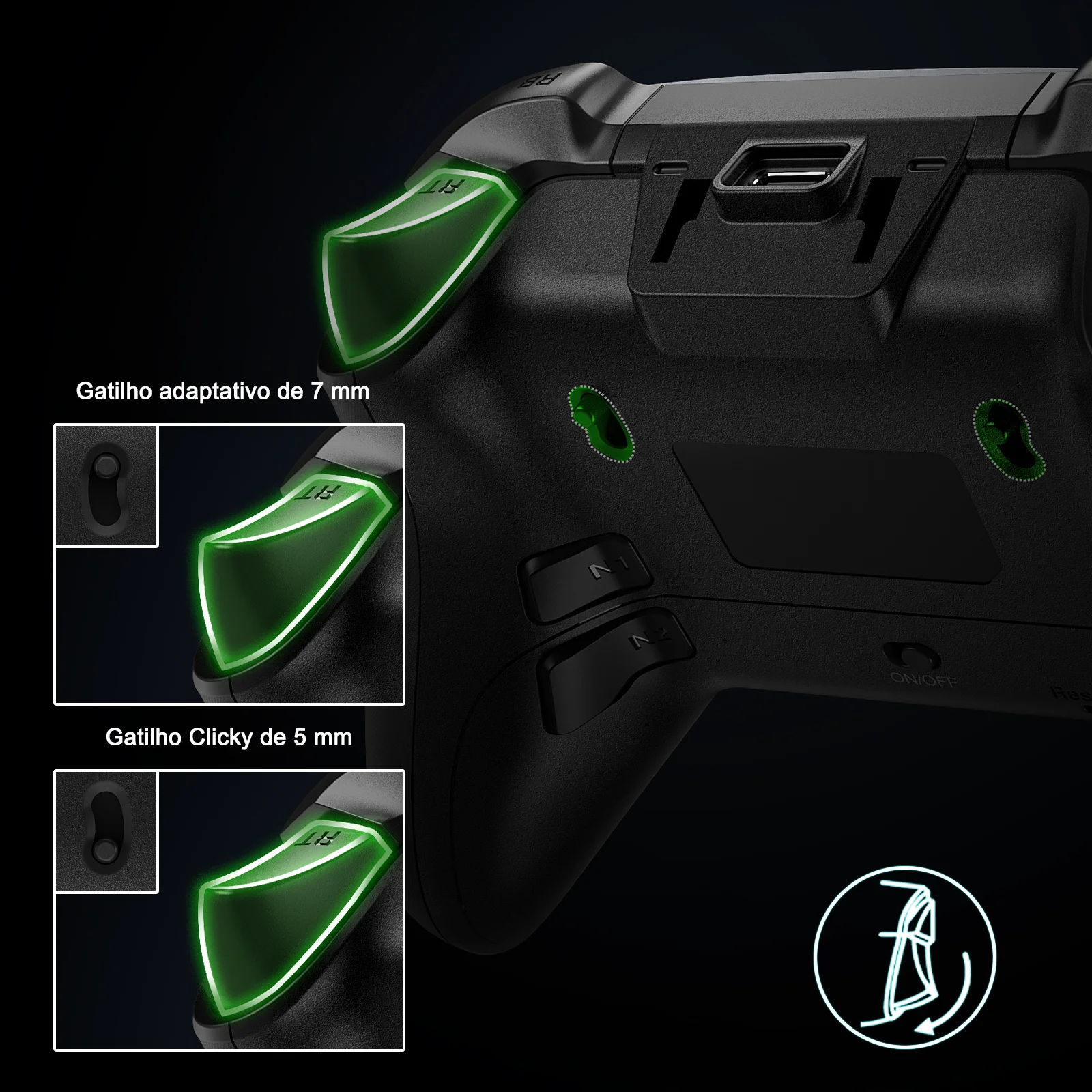 A iluminação RGB nos joysticks esquerdo e direito suporta vários modos de animação e permite o ajuste de brilho e cor, adicionando um toque visual personalizado.