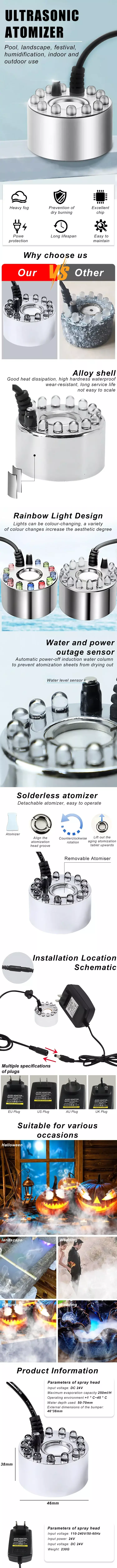 Criador de névoa com 12 luzes LED, rotação que muda de cor cria uma atmosfera de festa fantástica.A Mini Máquina de Nevoeiro traz um efeito surpreendente para sua Páscoa, Natal, Halloween e outras decorações de Natal.