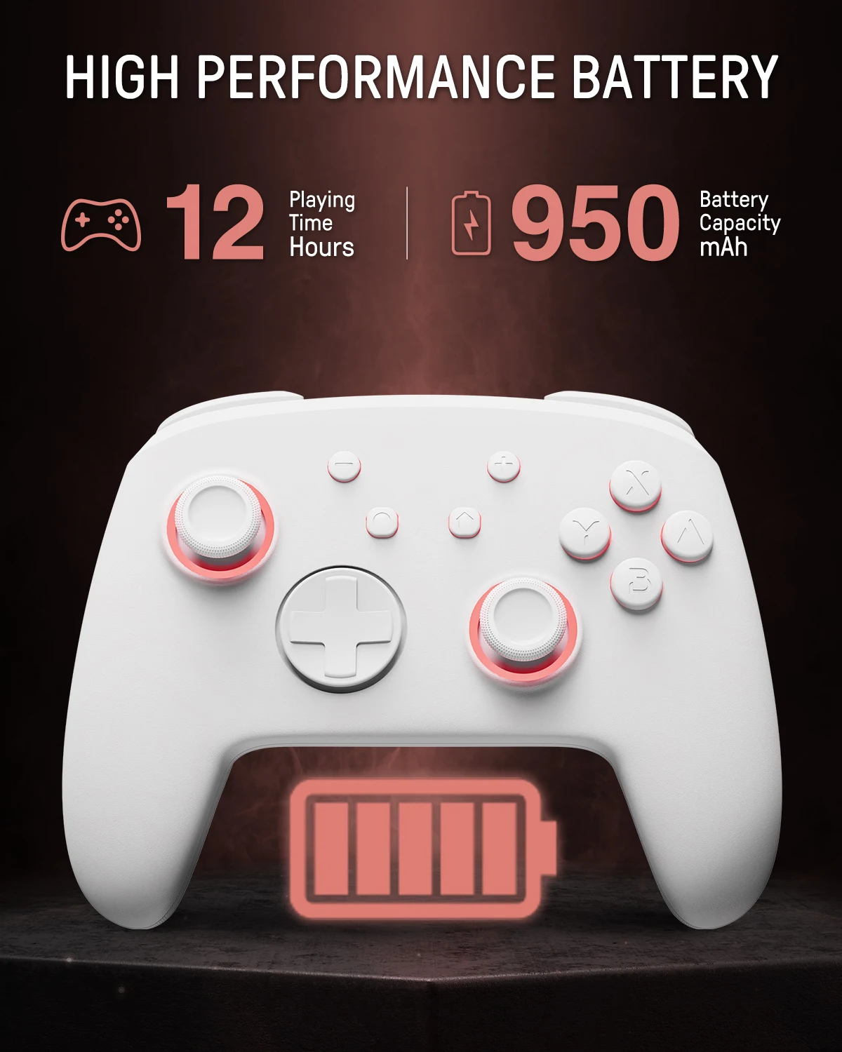 Visor Oculto-til-lit: É uma das nossas soluções para alcançar esta experiência de jogo melhorada. A decoração da superfície do projeto do controlador do interruptor pro é harmonizada perfeitamente com efeitos luminosos. Quando o LED não está ativo, ele fica silenciosamente como um controlador branco puro. E quando ele liga, o padrão oculto vai iluminar sua incrível noite de jogos