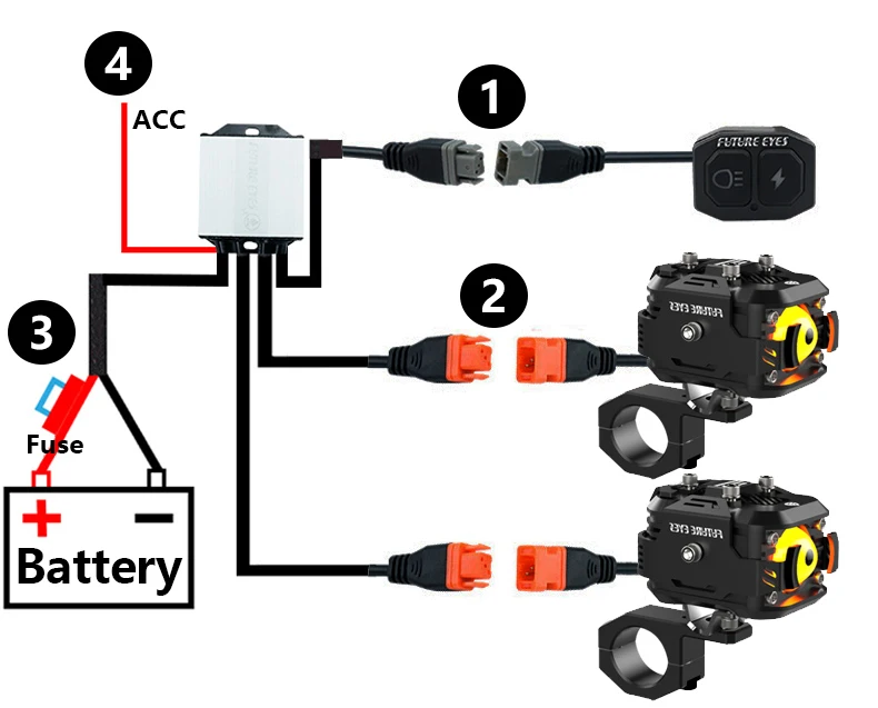 4- A pequena linha vermelha separada é a descrição da linha ACC da linha Acc: O holofote só acenderá quando a chave for ligada após a conexão da linha.Ele não ligará se a chave não estiver ligada.Recomenda-se usar a bateria do carro para testar primeiro e confirmar se ela está instalada corretamente na fiação.A linha ACC pode ser conectada à linha de saída da fechadura elétrica da porta, sinal de giro, luz traseira, fusível original do carro.