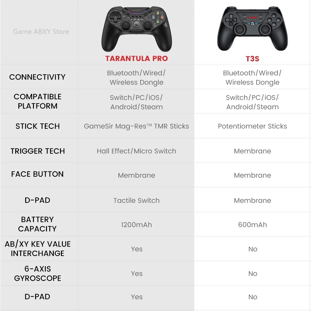 Parando como uma Tarântula, respondendo como um raio.O Tarantula Pro, com seus botões multiextra na frente alinhados em três linhas, lembra vividamente a aparência de uma Tarântula.O controlador Tarantula Pro possui uma faixa de iluminação RGB e botões faciais coloridos, fazendo-o brilhar em sua experiência de jogo.Também está equipado com os novos sticks Mag-ResTM TMR GameSir, que combinam as vantagens do potenciômetro e das sticks Hall Effect, combinando perfeitamente alta qualidade e estética.