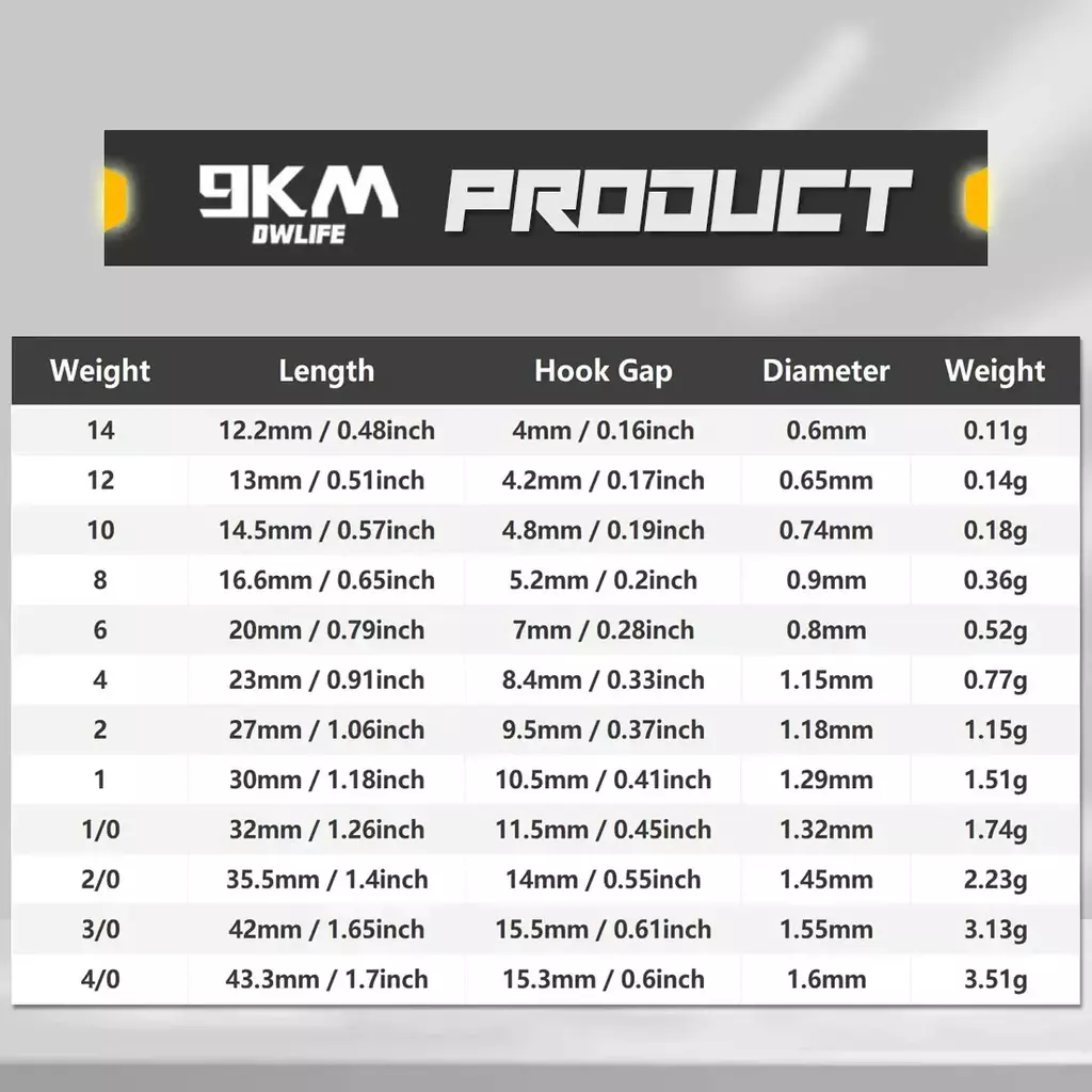 Os ganchos agudos de 9KM são feitos de aço carbono de alta qualidade com revestimento niquelado preto na superfície,