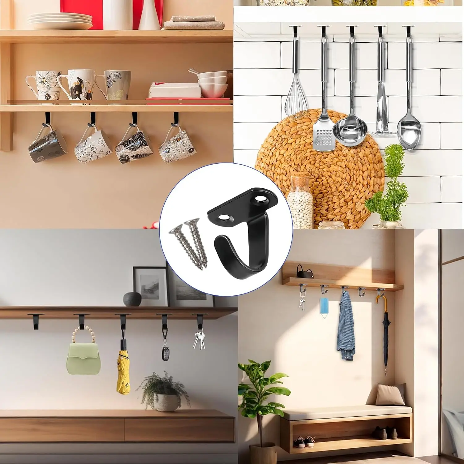 4.Adequado para pendurar toalhas de banheiro, utensílios de cozinha, armários, vasos de flores, copos, alimentadores de pássaros, decorações de férias, cordas leves, sinos de vento e muito mais.