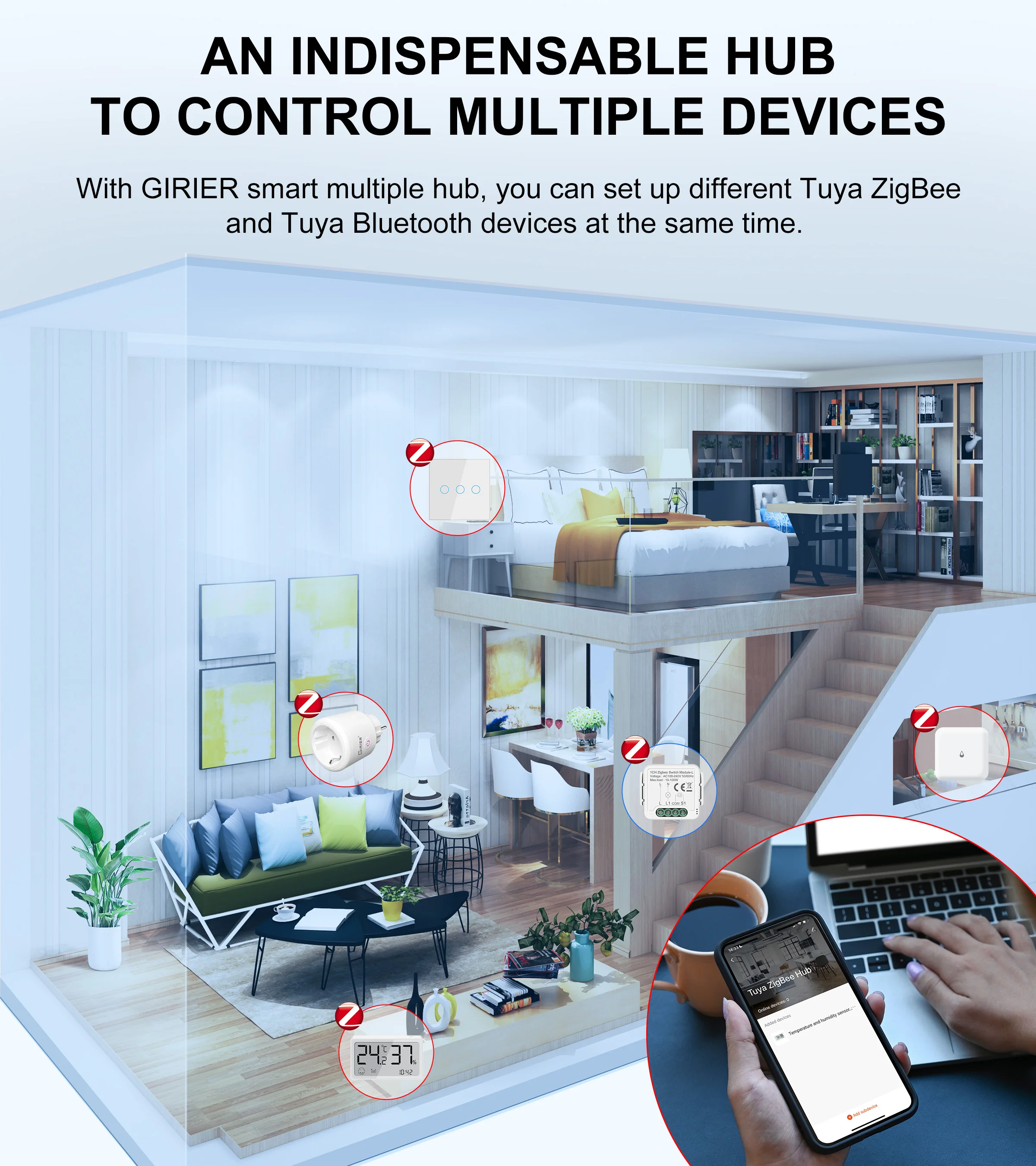 Com o hub de gateway inteligente GIRIER, você pode configurar diferentes dispositivos Tuya ZigBee ao mesmo tempo.