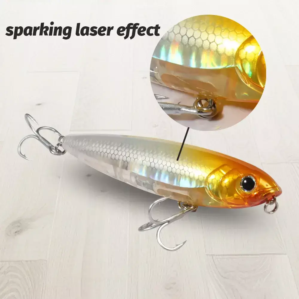 • Isca de pesca Topwater:Esta isca de pesca Walk The Dog Topwater foi projetada para atrair presas da superfície, tornando-a uma ferramenta eficaz para qualquer pescador.