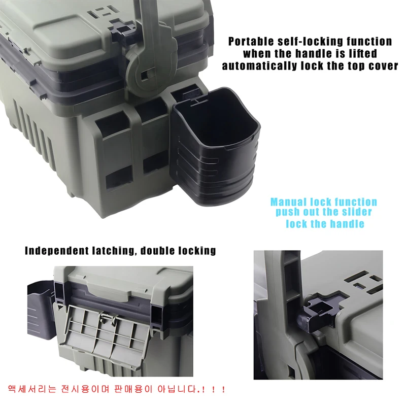 • Design multifuncional:Este grande organizador de caixa de pesca foi projetado com múltiplas funções, incluindo um balde de isca viva e uma caixa de armazenamento espessante, tornando-o uma ferramenta versátil para todas as suas necessidades de pesca.