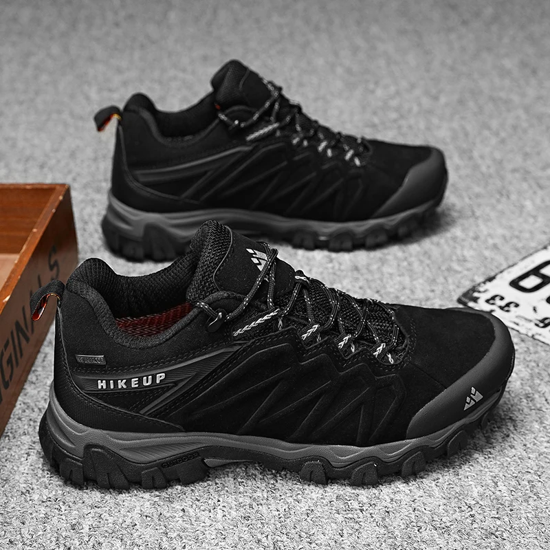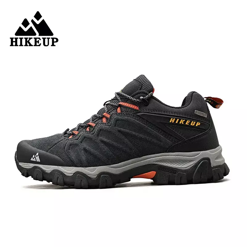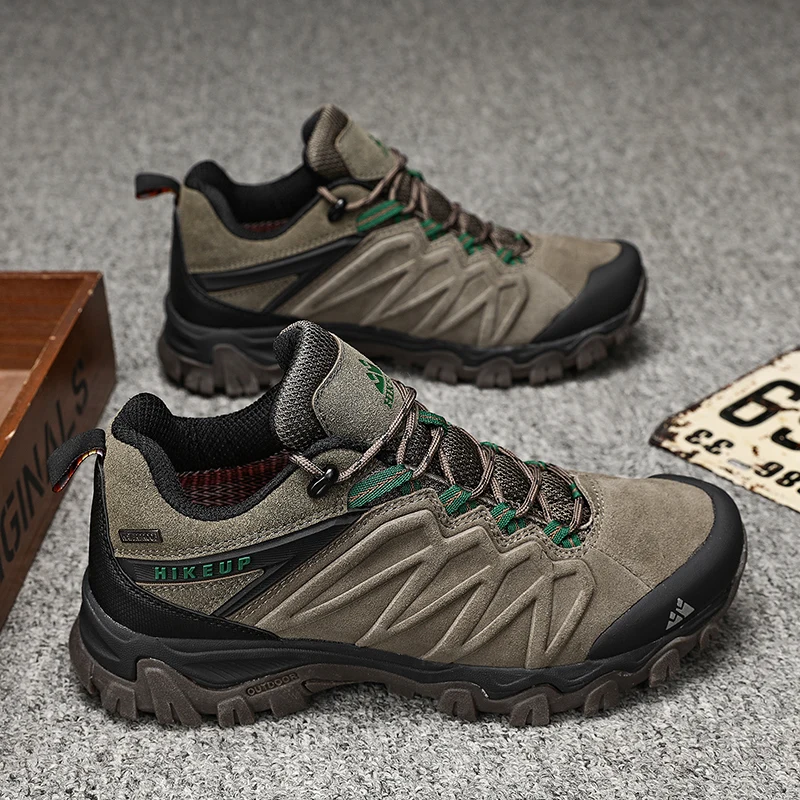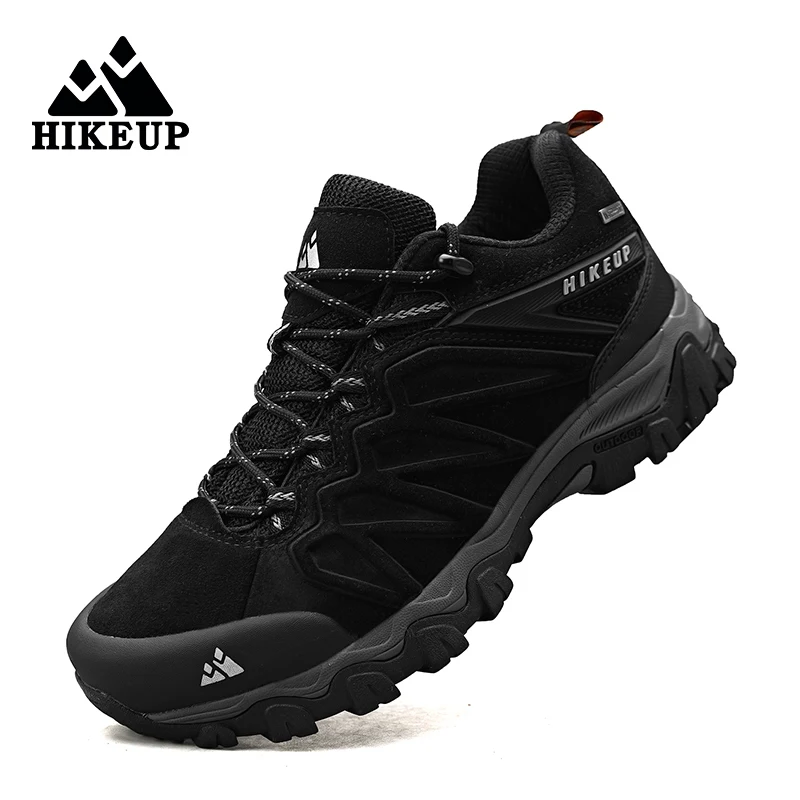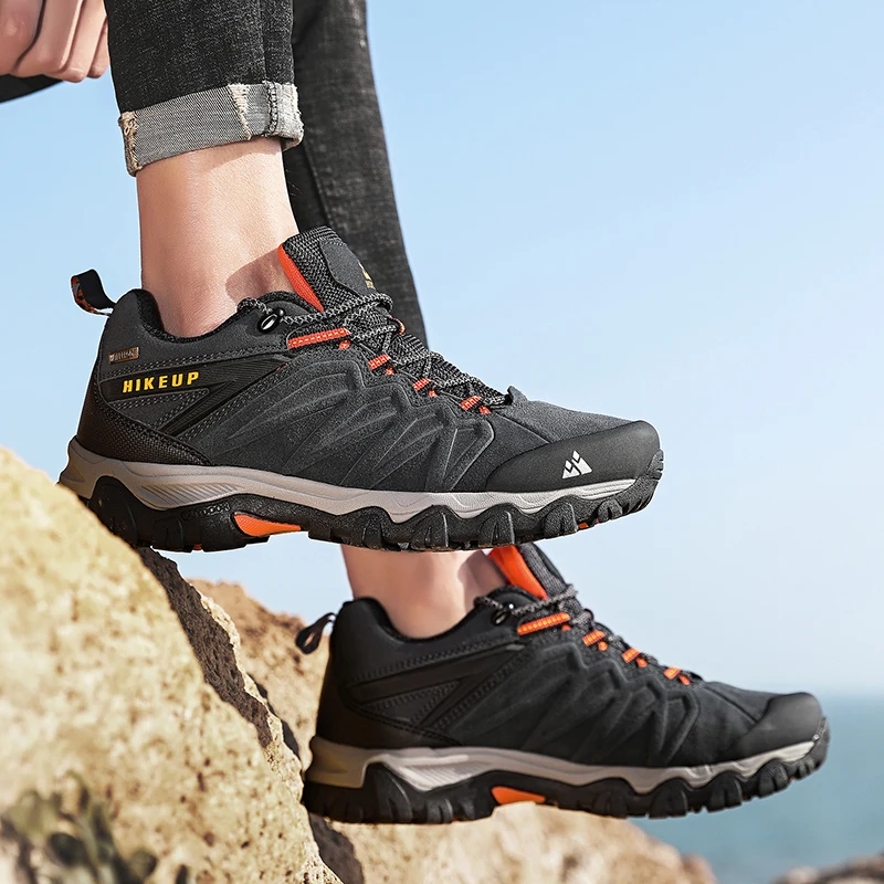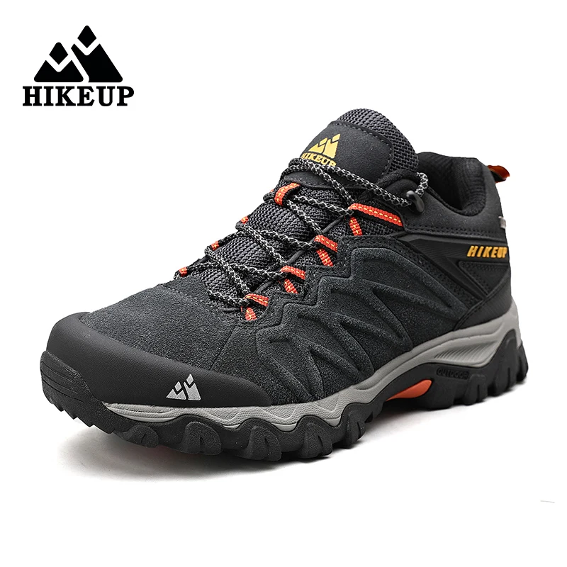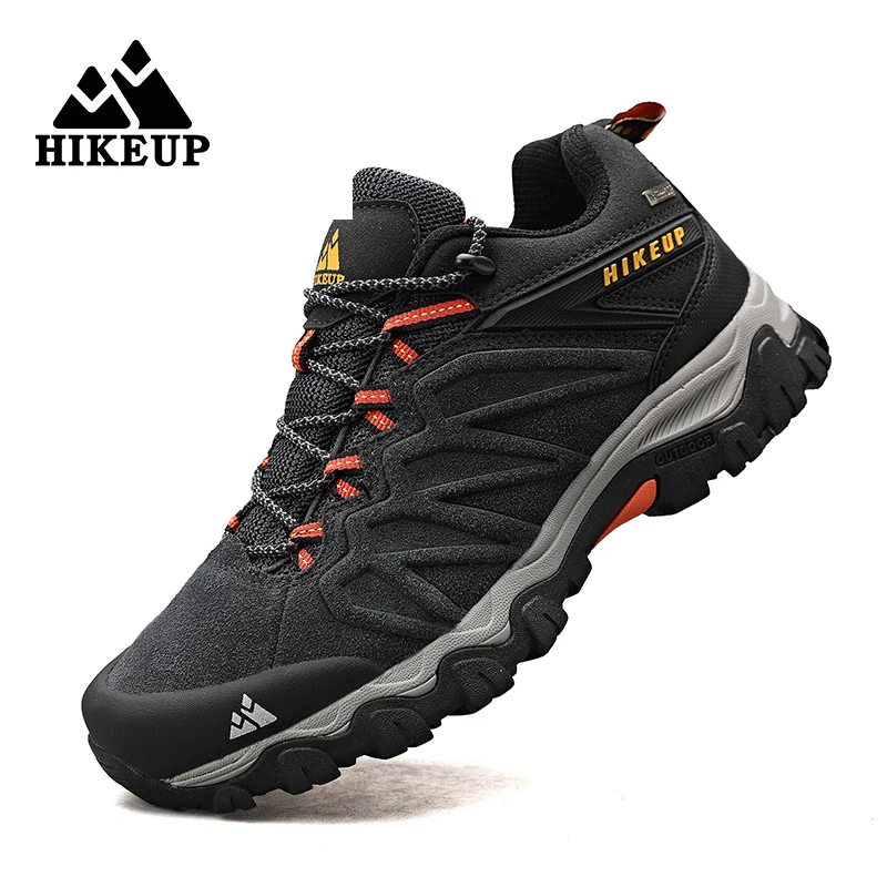 Hikeup alta qualidade couro caminhadas sapatos homens esporte ao ar livre durável trekking couro sapatos lace-up escalada caça tênis