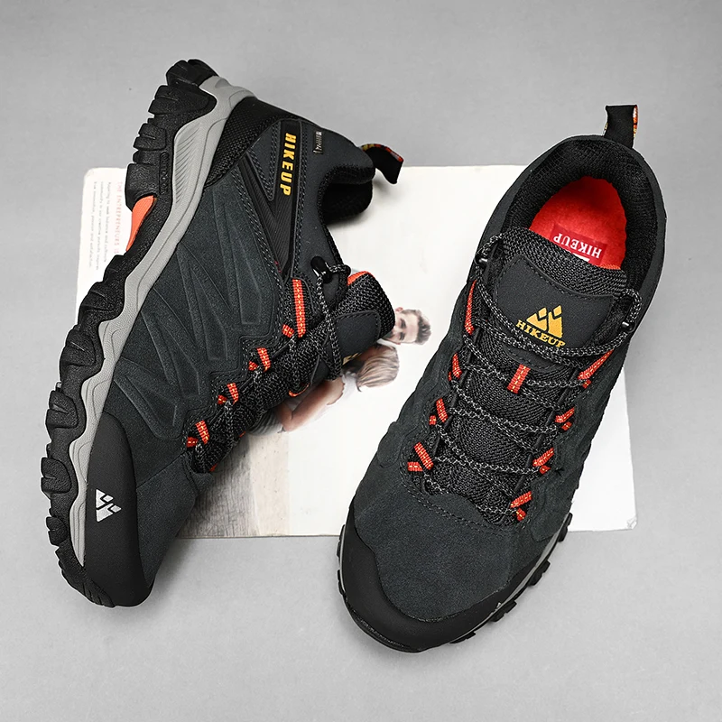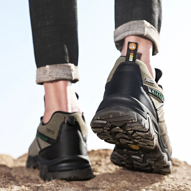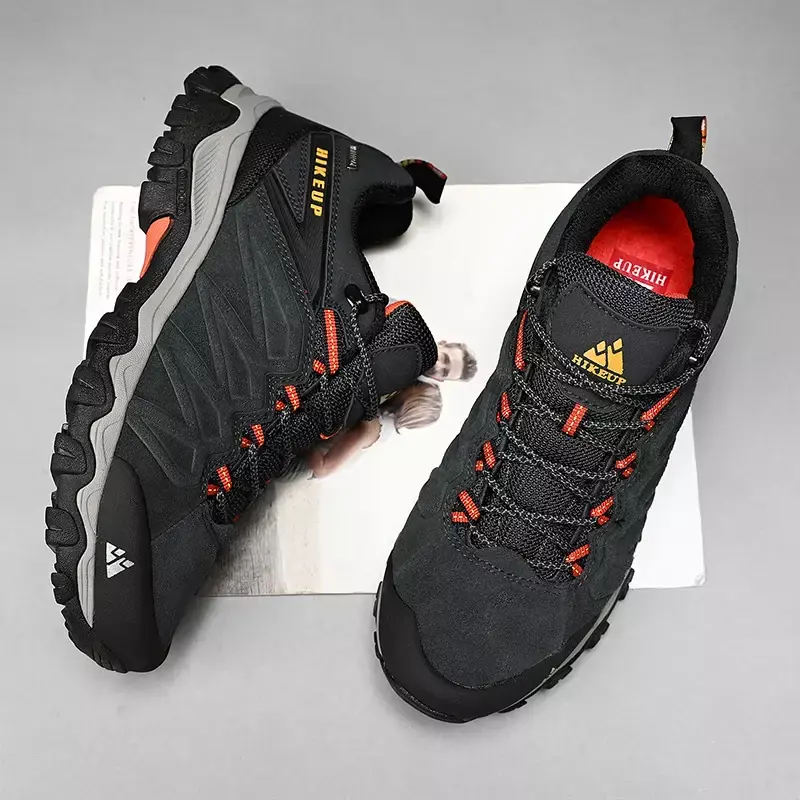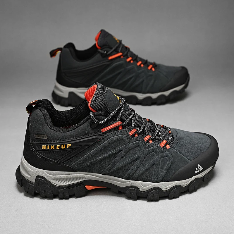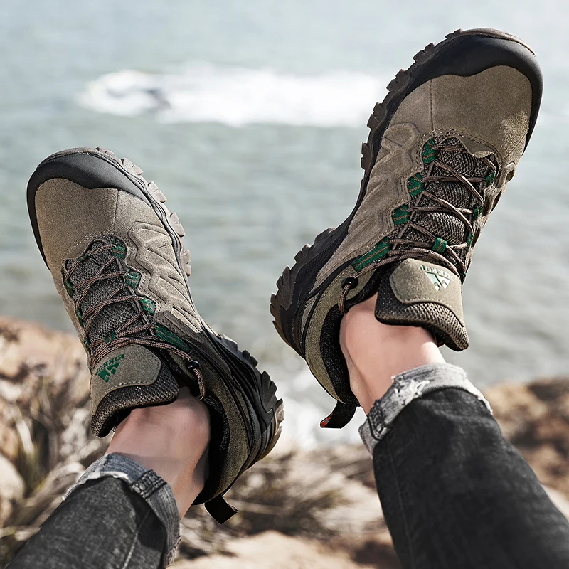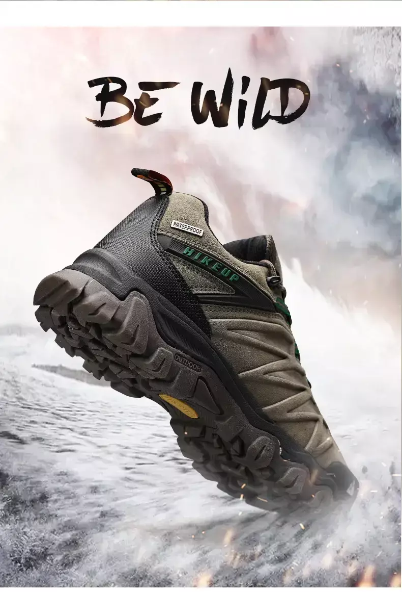 Hikeup alta qualidade couro caminhadas sapatos homens esporte ao ar livre durável trekking couro sapatos lace-up escalada caça tênis
