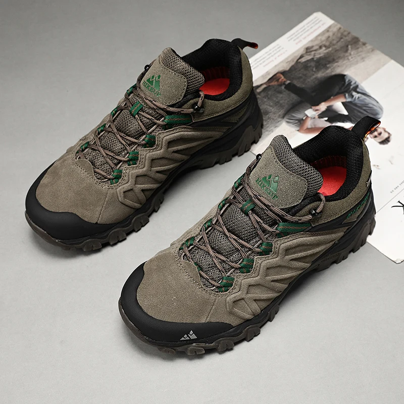 • Sapatos desportivos exteriores duráveis:Feito com couro de alta qualidade, estes sapatos de caminhada são construídos para durar e suportar condições externas difíceis.