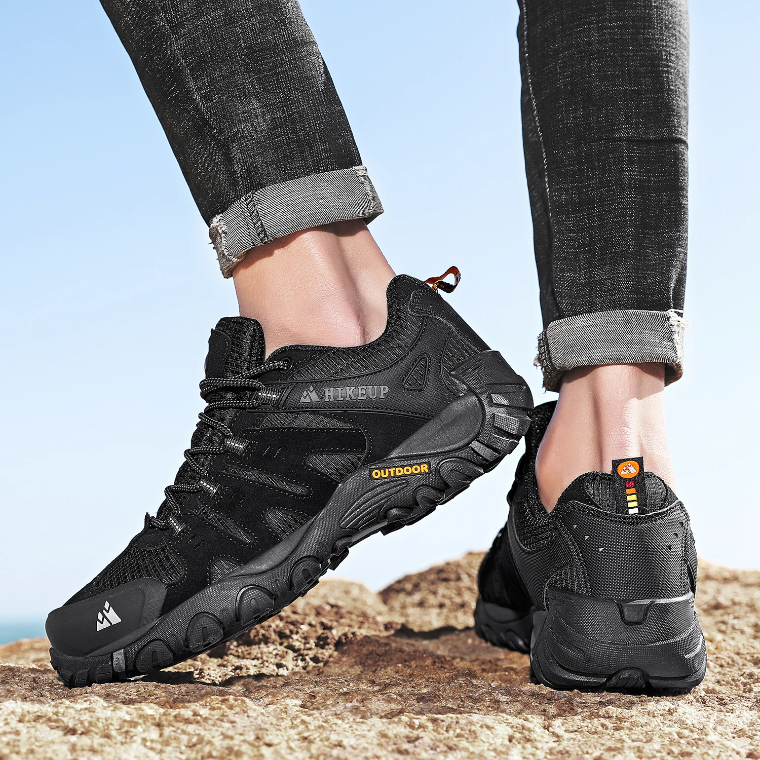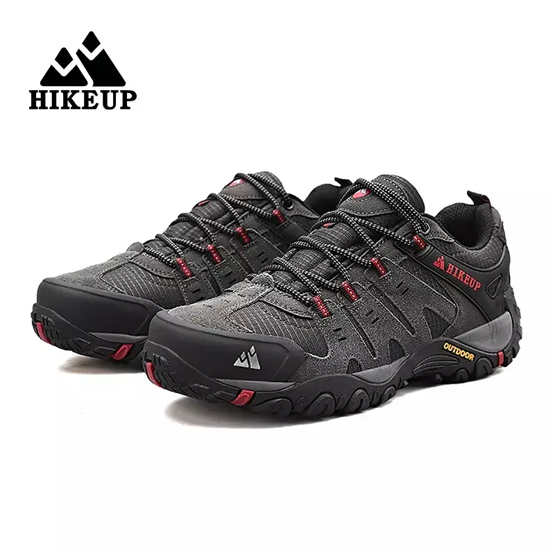 HIKEUP Men's Hiking Shoes Suede Leather Ourdoor Shoes Wear-resistant Men Trekking Walking Hunting Tactical Sneakers Factory Outlet