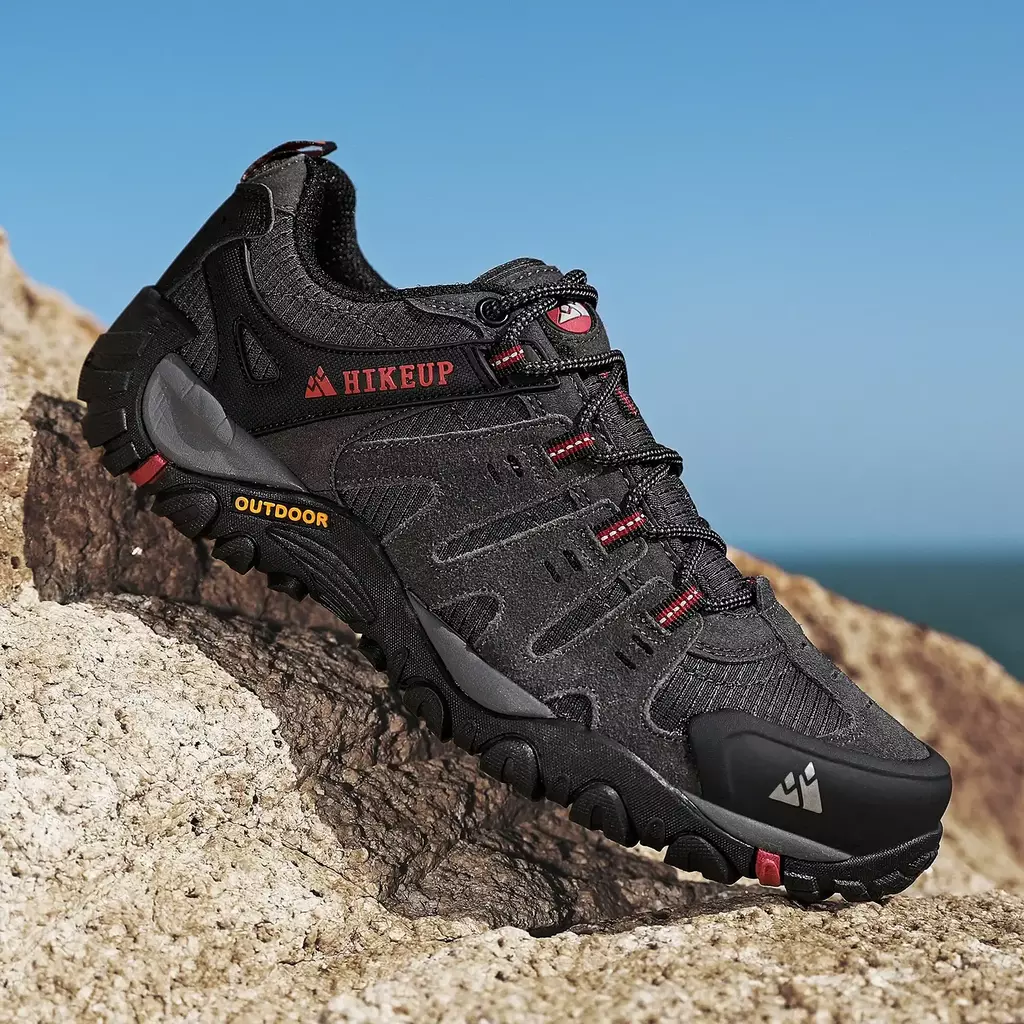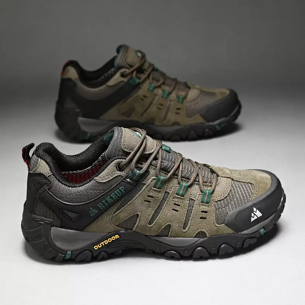 HIKEUP Men's Hiking Shoes Suede Leather Ourdoor Shoes Wear-resistant Men Trekking Walking Hunting Tactical Sneakers Factory Outlet