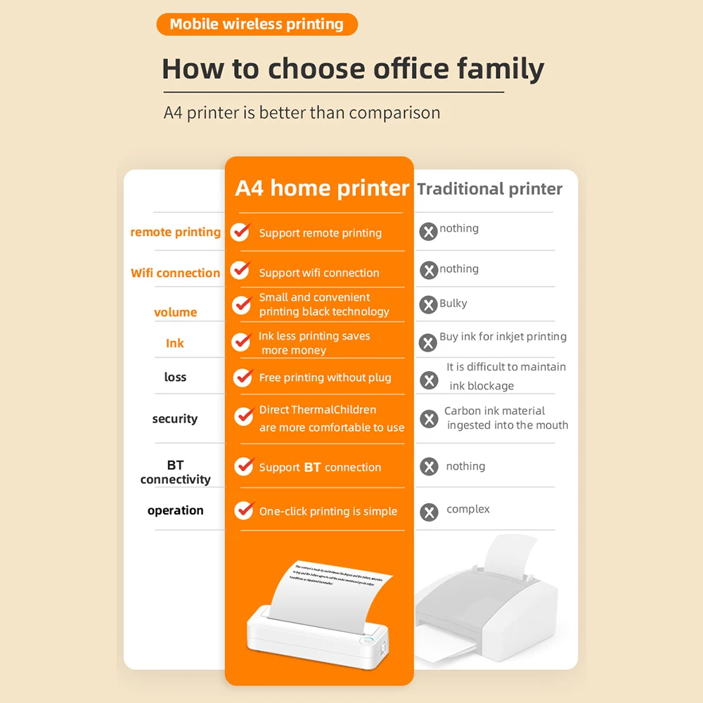 Tudo em uma impressora: Aperfeiçoe imprimir qualquer coisa que você quer, arquivo do pdf, papel do teste, página web, contrato, foto, imagem, etc. Sem fio para imprimir cargas de papel durante a viagem de negócios, um excelente assistente para estudo e trabalho de escritório. Impressão Inkless sem fita.