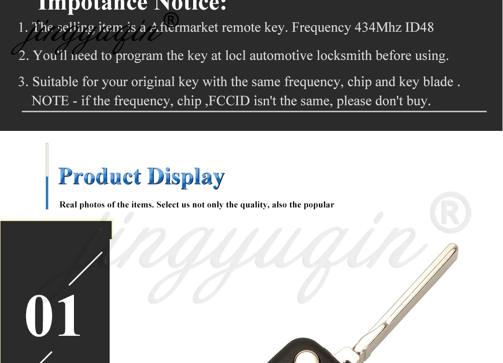 2.A imagem é do produto real.Por favor, compare a chave do seu carro, certifique-se de que seu item seja igual ao nosso produto antes de comprar.