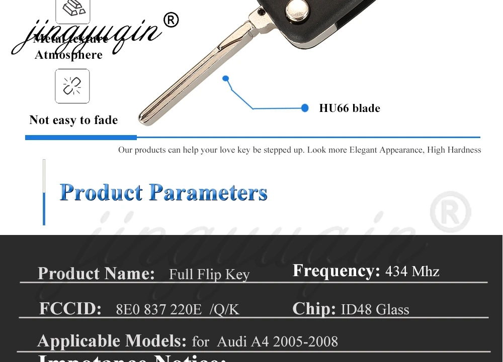 3.A chave é adequada apenas para sua chave original de frequência 433mhz Chip ID48 chave.