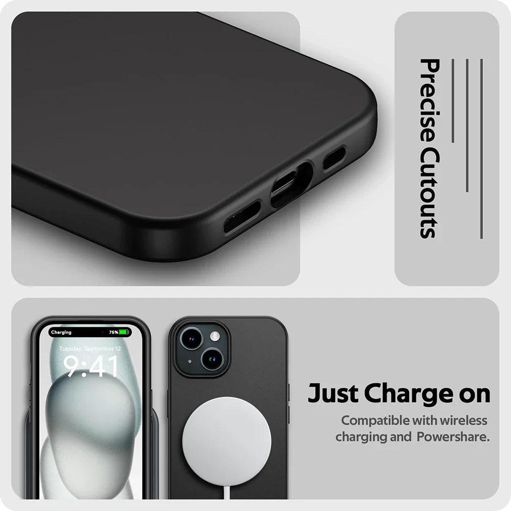 Capa macia de silicone fosco de luxo para iPhone 15 14 Plus 13 12 Mini 11 Pro XS Max X XR SE 2 3 7 8 Plus Capa preta sólida ultrafina