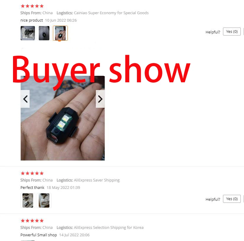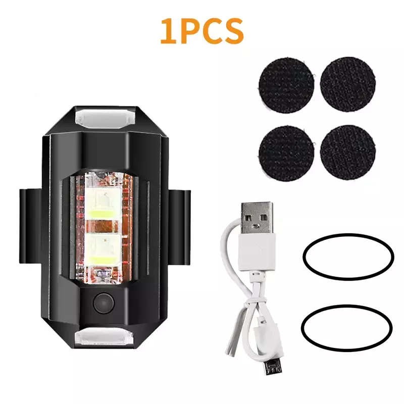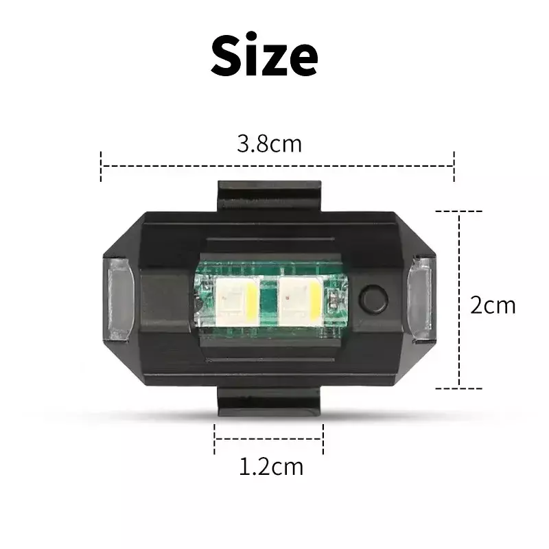 7 kinds of lighting colors: white, red, green, blue, yellow, purple, sky blue. Modes: Seven-color fast flashing, seven-color slow flashing, seven-color SOS mode, seven-color always-on, civil aviation mode, cycle mode, etc. Thirty modes with memory function.