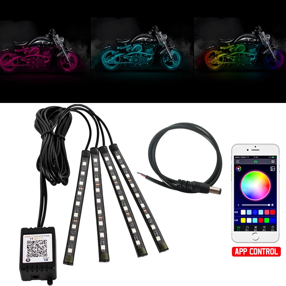 Luzes led para acessórios da motocicleta rgb app controle de som moto backlight flexível à prova dwaterproof água decoração luz tira néon 12v