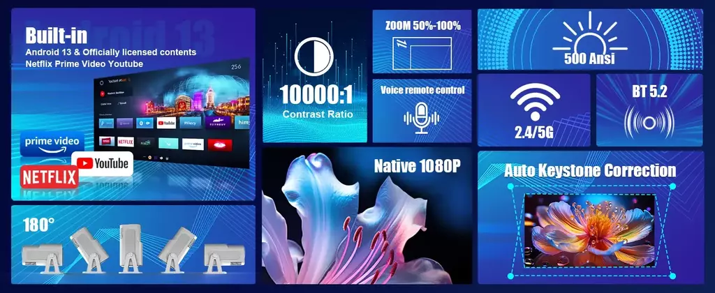 500ANSI e 1080P nativo e taxa de contraste 10000:1
