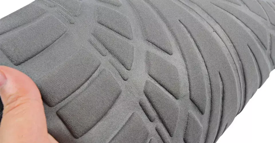 Design inovador 3D Emboss Tire Track Print Pano de malha com relevo térmico, um padrão atraente adorna o painel central desta capa