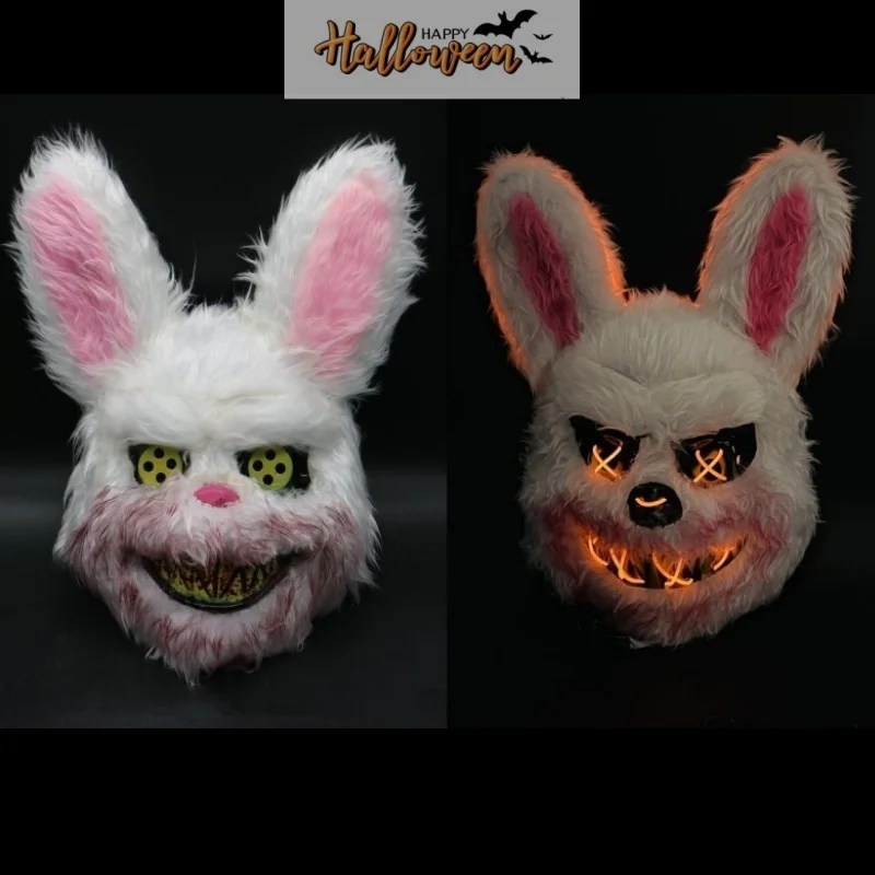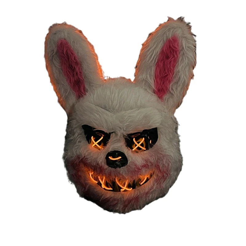 1.Perfeita para adultos de todas as idades, esta máscara de acessório de fantasia é branca, com orelhas rosa e olhos amarelos.