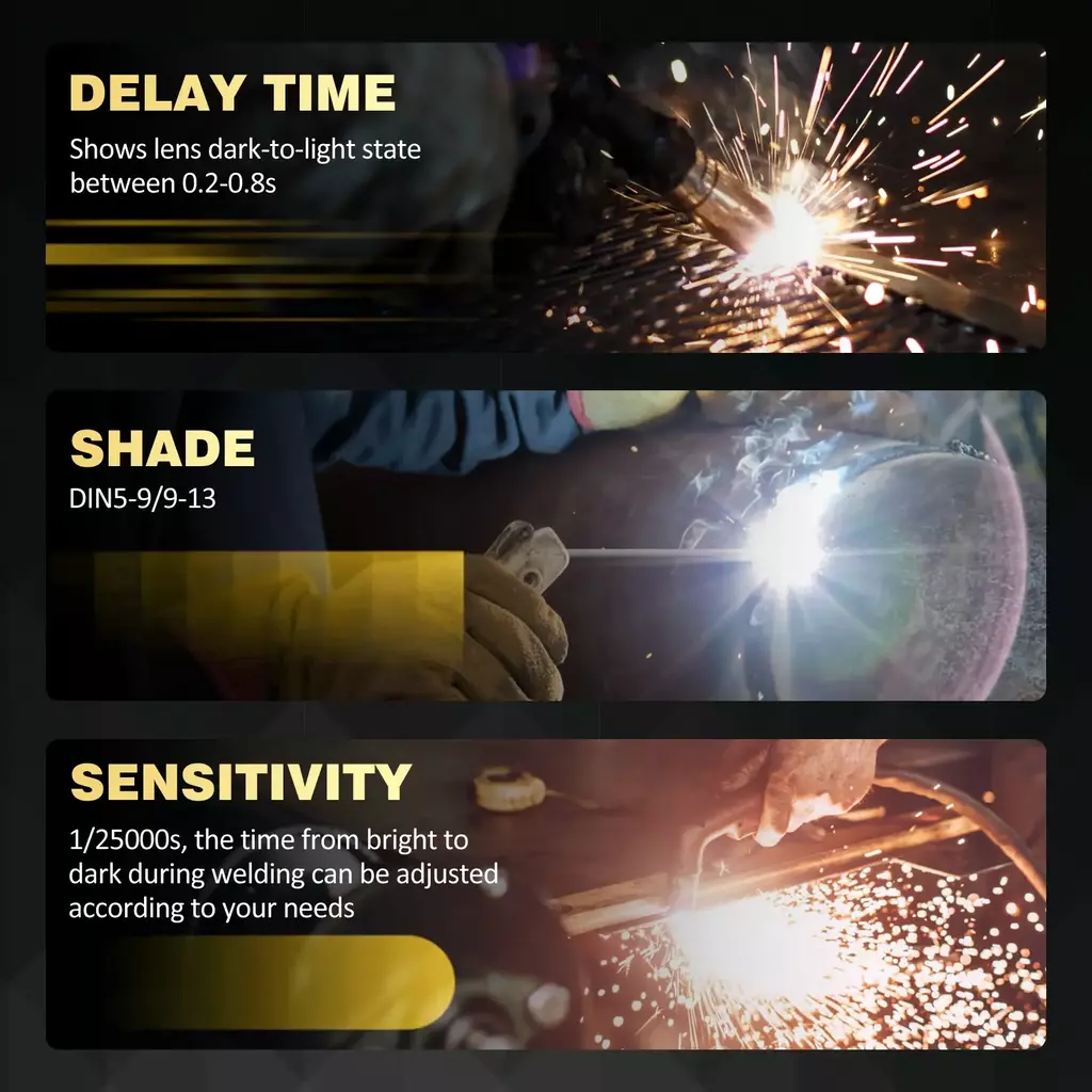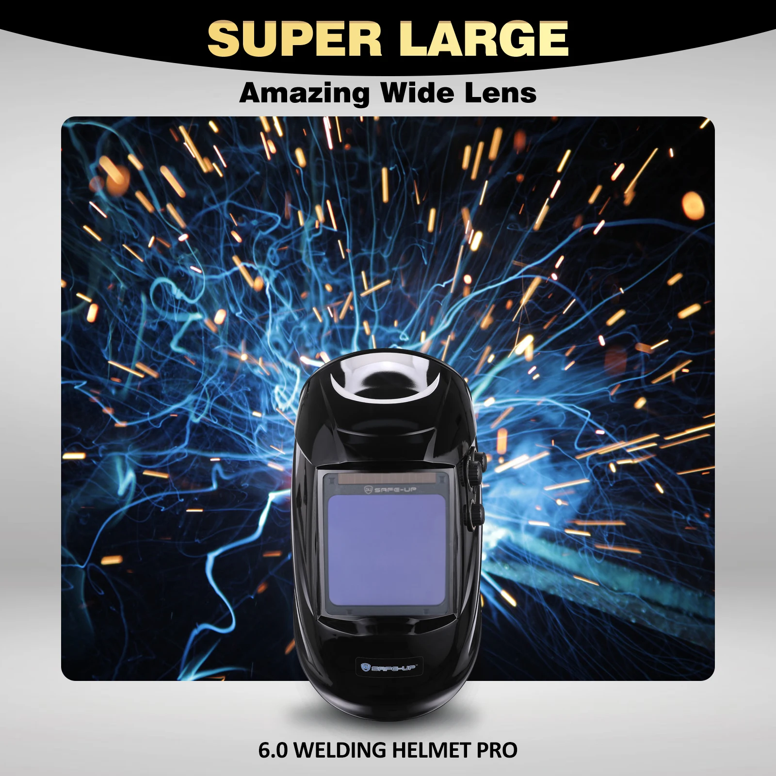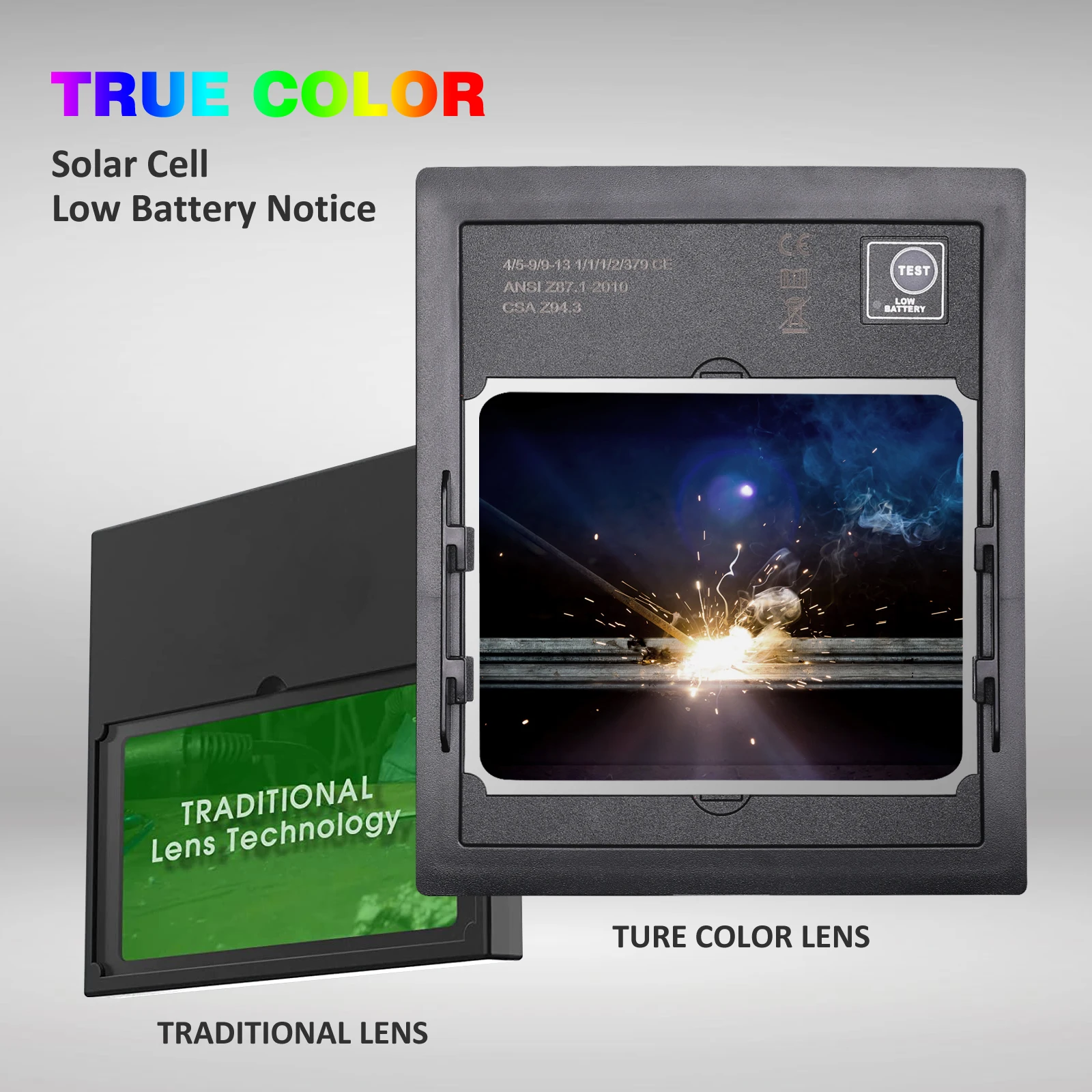 O capacete de soldagem com escurecimento automático oferece uma grande tela de visualização de 3,94"X3.81" com 4 sensores Premium e adota a mais recente tecnologia True-Color para restaurar cada detalhe das condições de trabalho.