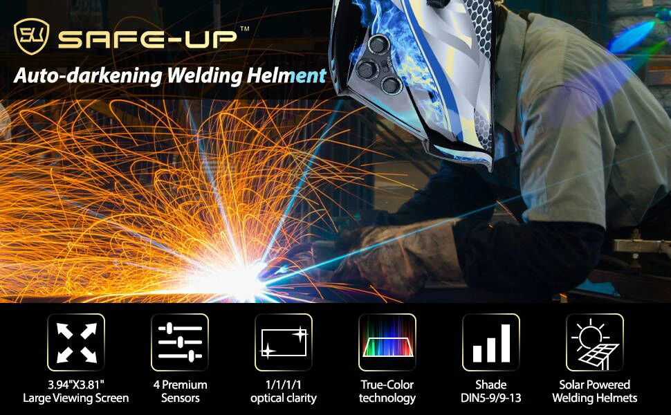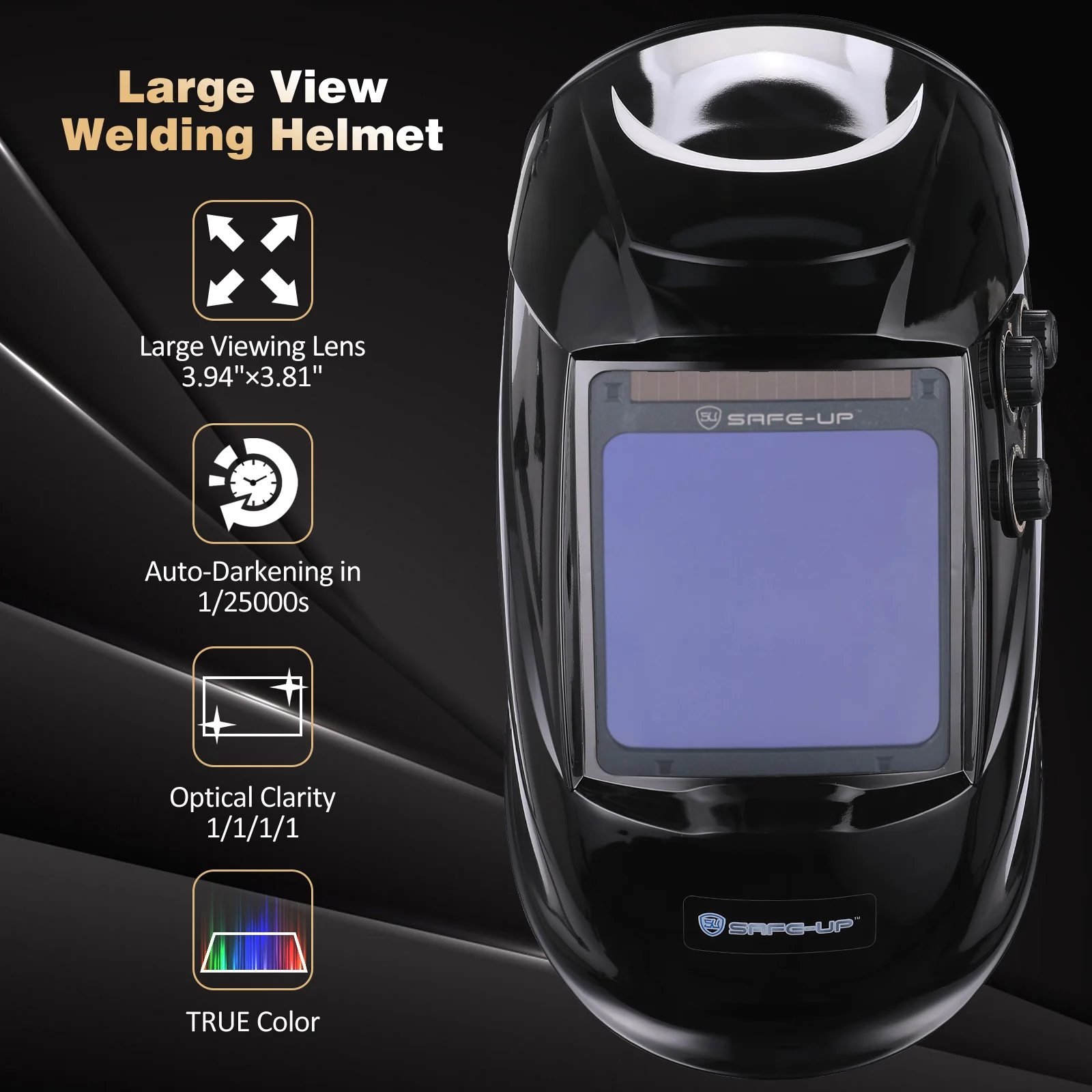 Safeup capacete de soldagem 1/1/1/1 máscara de escurecimento automático cor verdadeira visão grande 4 sensor de arco 4-13 para máquina de solda mma tigre mig usb