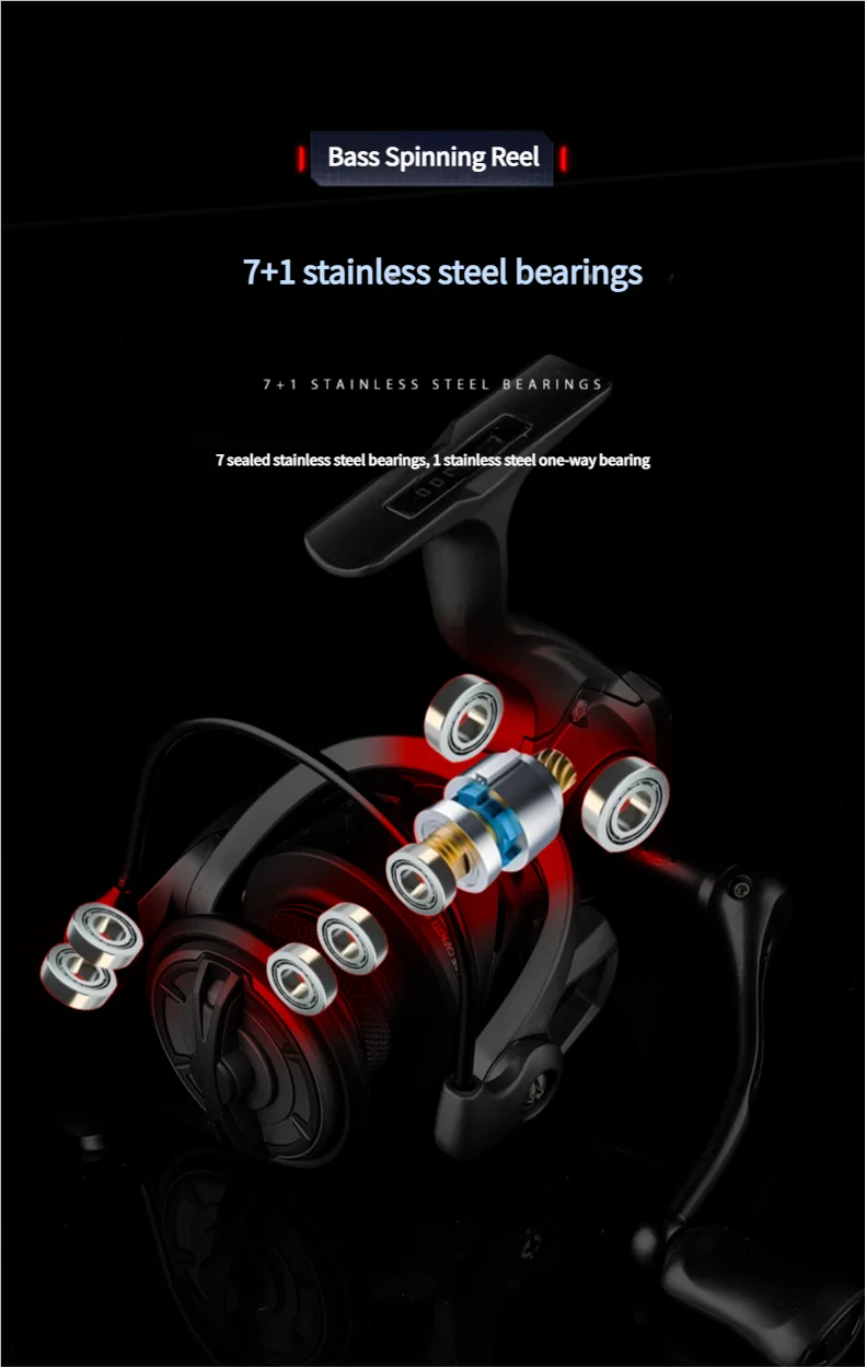 4.7+1 Rolamentos de esferas totalmente selados – Selados contra poeira e água, garantindo desempenho ultra-suave em condições adversas.