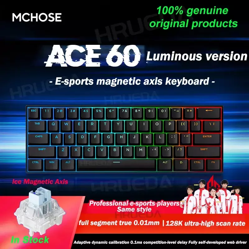 MCHOSE Ace 60 Pro 68 Teclado Mecânico de Eixo Magnético Original 0,01ms Latency RT 0,01mm 128K Teclado para Jogos Personalizado Esports