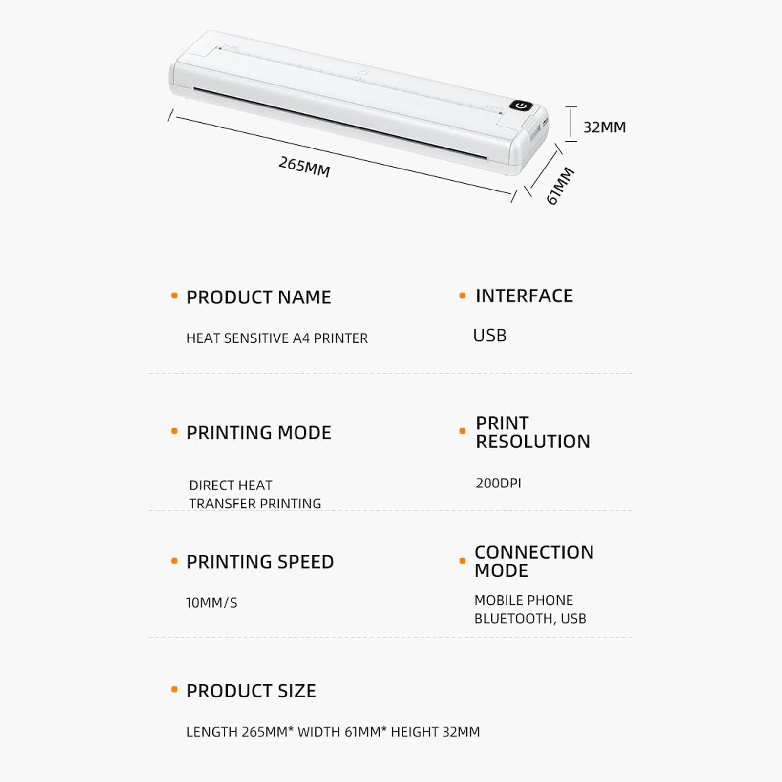 [Tamanho da impressão] A impressora sem fio suporta papel térmico com uma largura de 210 ou 218mm (largura do papel A4), atendendo a uma variedade de necessidades de impressão.