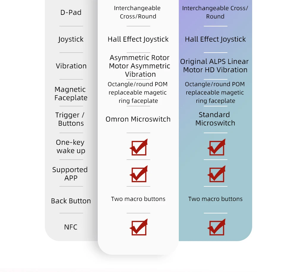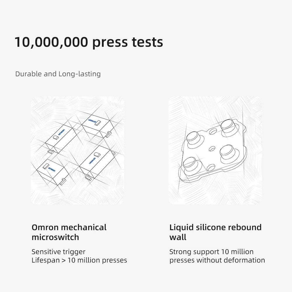 Buscar uma experiência de jogo excepcional é precisamente a razão pela criação de M6S e M6 HD. O M6S vem equipado com microinterruptores padrão resistentes e confiáveis, juntamente com tecnologia de vibração do motor do rotor, garantindo respostas rápidas do controlador e feedback tátil. Em comparação, o M6 HD incorpora microinterruptores de alta precisão da Omron e os motores lineares ALPS originais, elevando a precisão do controle e a resposta feliz a um nível totalmente novo. Quer se trate de uma execução de entrada precisa ou de uma experiência de vibração envolvente, tanto M6S quanto M6 HD são projetados para oferecer aos jogadores uma satisfação sensorial incomparável.